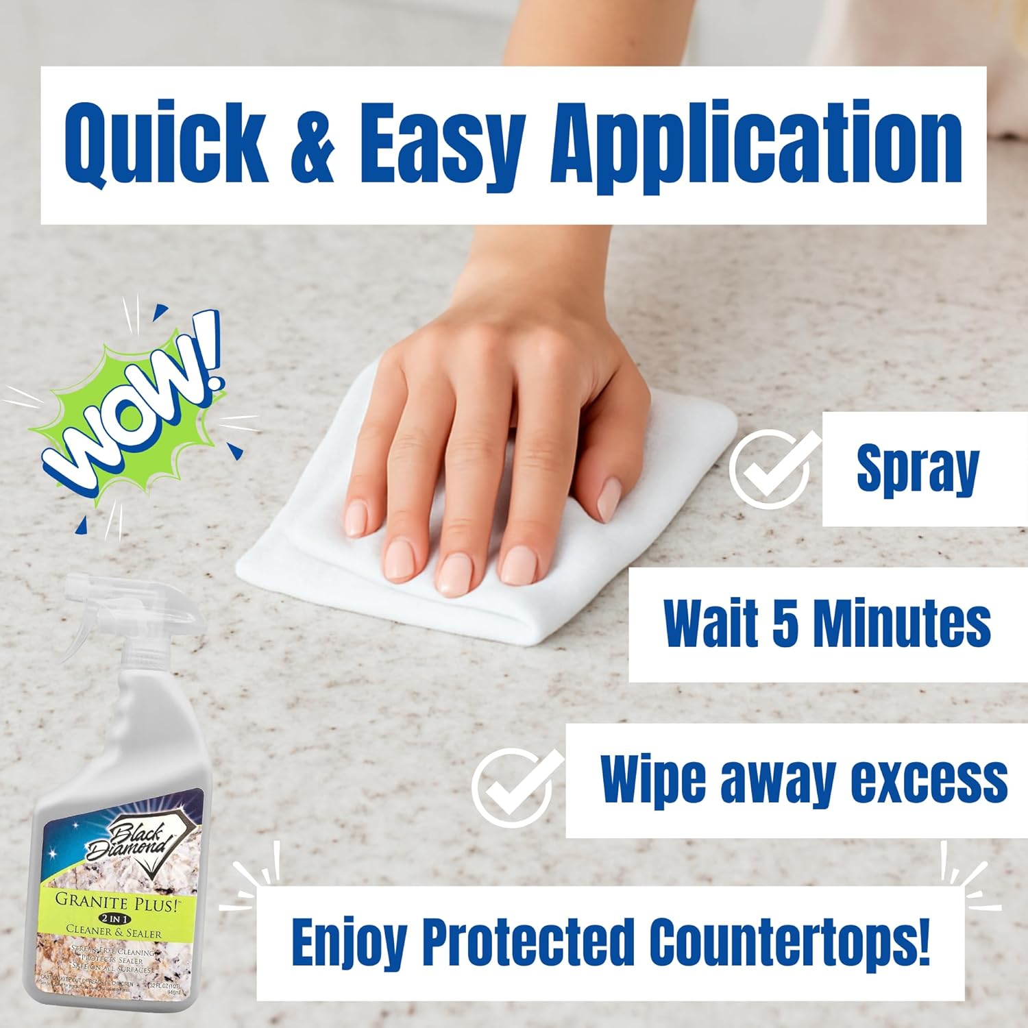Black Diamond Stoneworks GRANITE PLUS! 2 in 1 Cleaner & Sealer for Granite, Marble, Travertine, Limestone, Ready to Use! 32 Fl Oz
