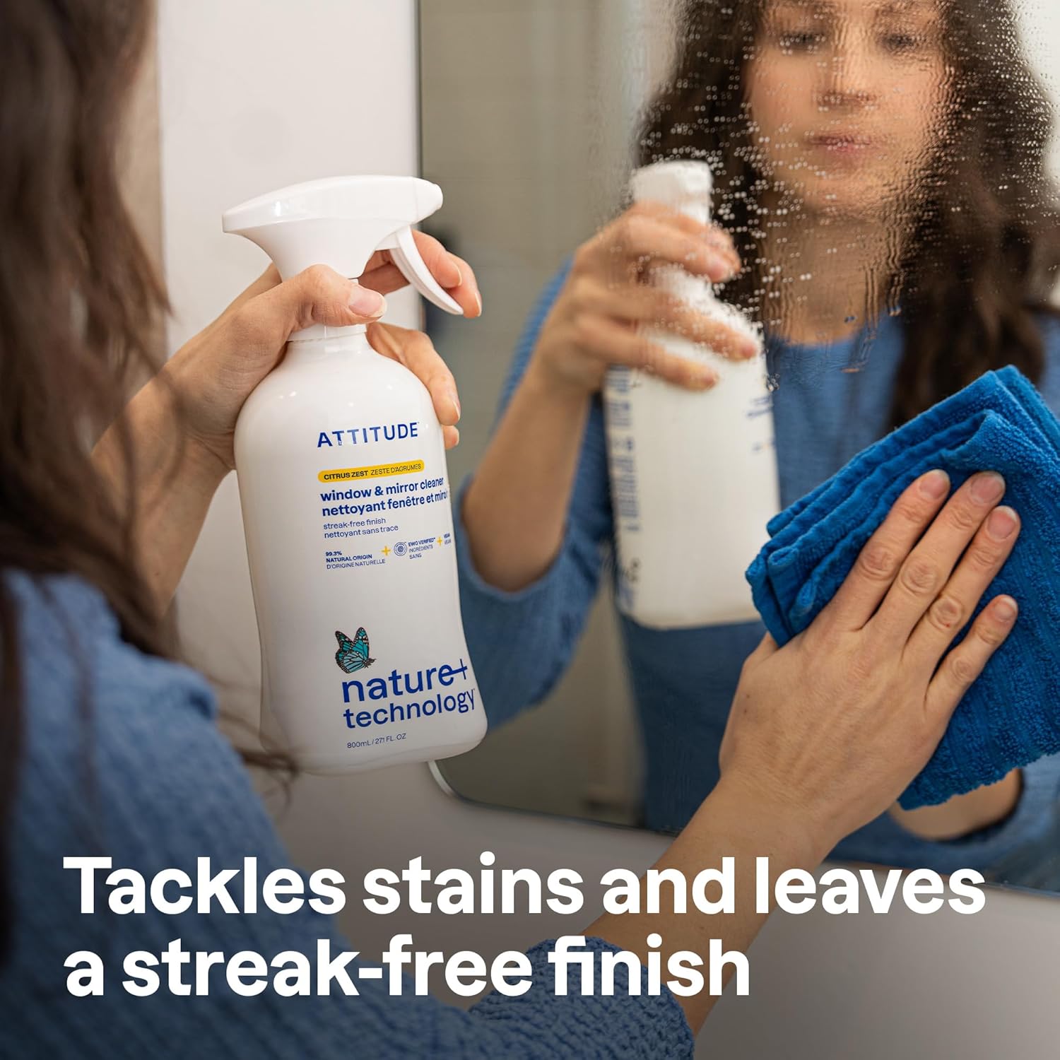 ATTITUDE Window & Mirror Cleaner, EWG Verified, Plant- & Mineral-Based, Vegan & Streak-Free Glass Spray, Citrus Zest Scent, 27.1 Fl Oz