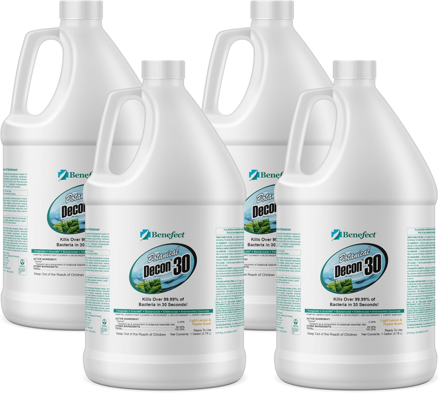 Benefect Botanical Decon 30 Disinfectant Cleaner - All Natural Formula for Effective Cleaning Power - Ideal for Restoration Jobs & Water Damage - 4 Gallons (4 Pack of 1-Gallons)