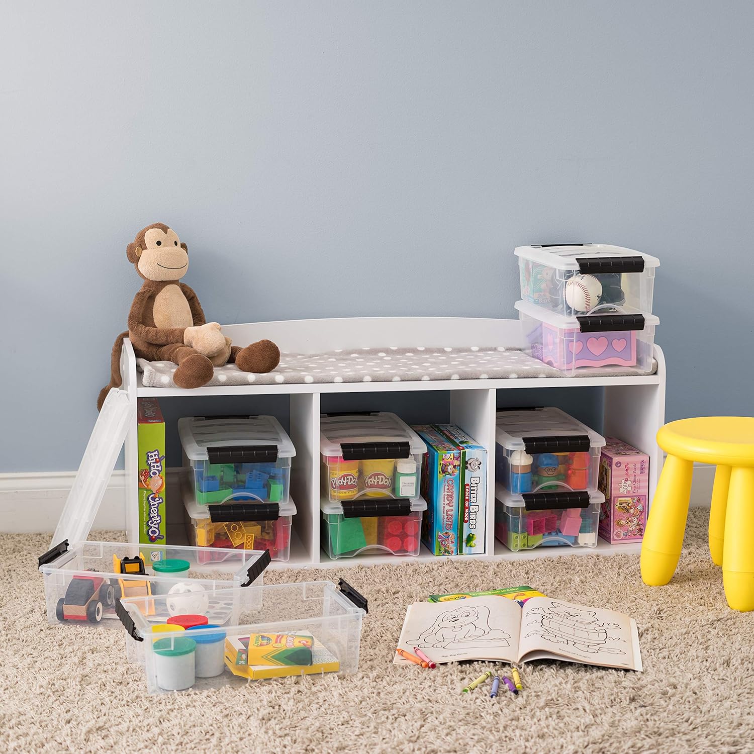 - STACKABLE STORAGE: Maximize space in your home, office, or playroom. The securely locking lid keeps items safe and allows bins to be stacked on top of each other.