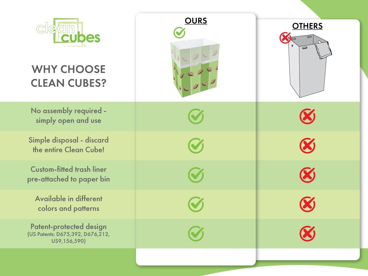 - ✅ 【EFFORTLESS CLEANUP & DISPOSAL】Simply unfold, use, and toss — keep your event clean and mess-free without extra effort. Clean Cubes are disposable recycling bins and trash cans with a patent-protected design and custom-fitted trash liner in each bin.