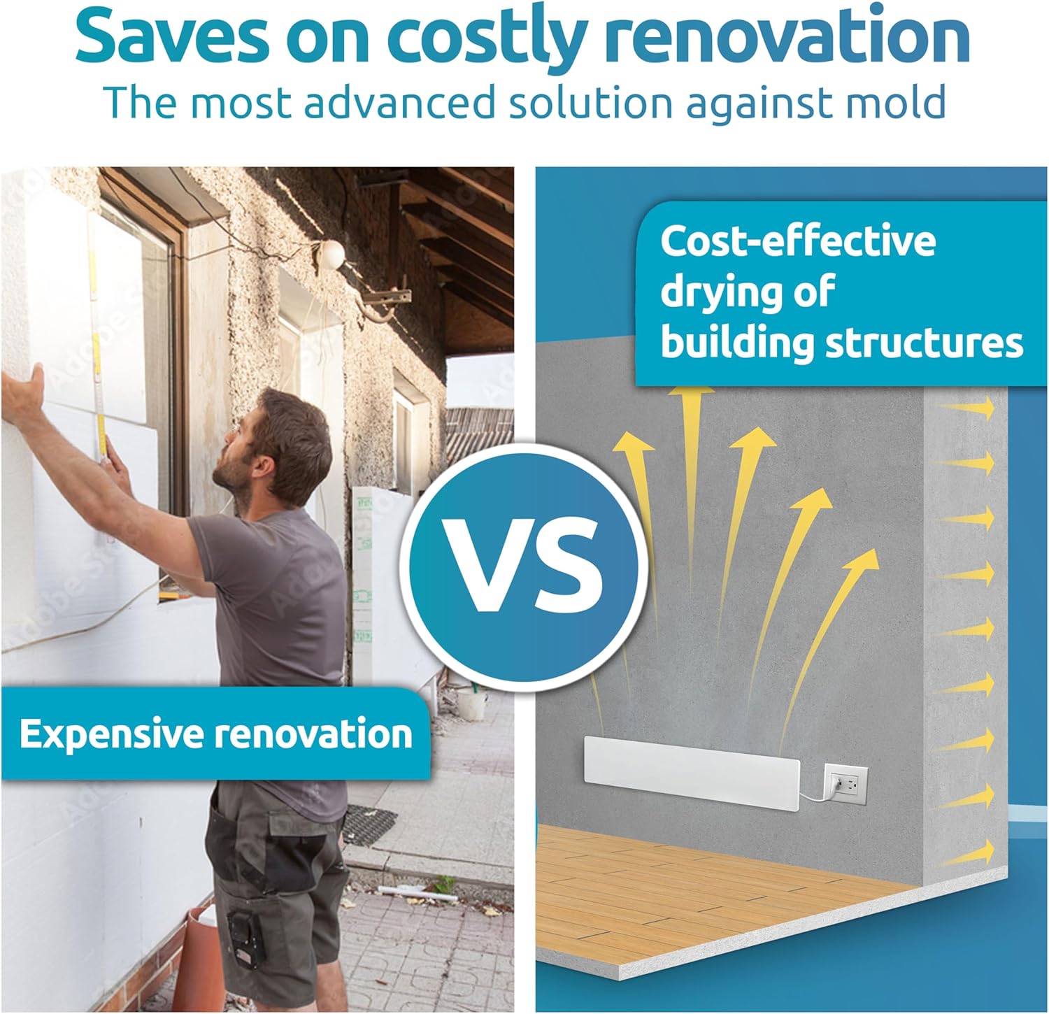 - SAFE FOR CHILDREN & PETS - 100% chlorine-free, the infrared heater is the best black mold killer for walls. Completely without aggressive anti-mold spray or mold removal gel. The ideal alternative for households with children and pets.