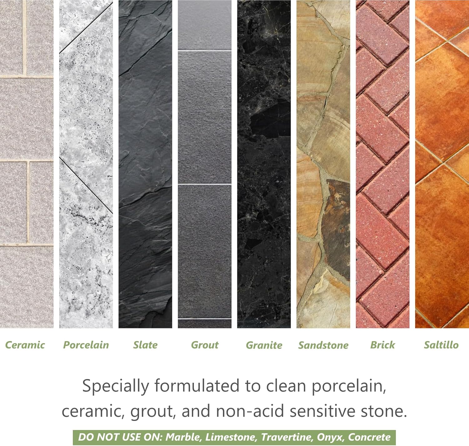 - Perfect ceramic, porcelain and grout cleaner. Use only on non-acid sensitive surfaces.