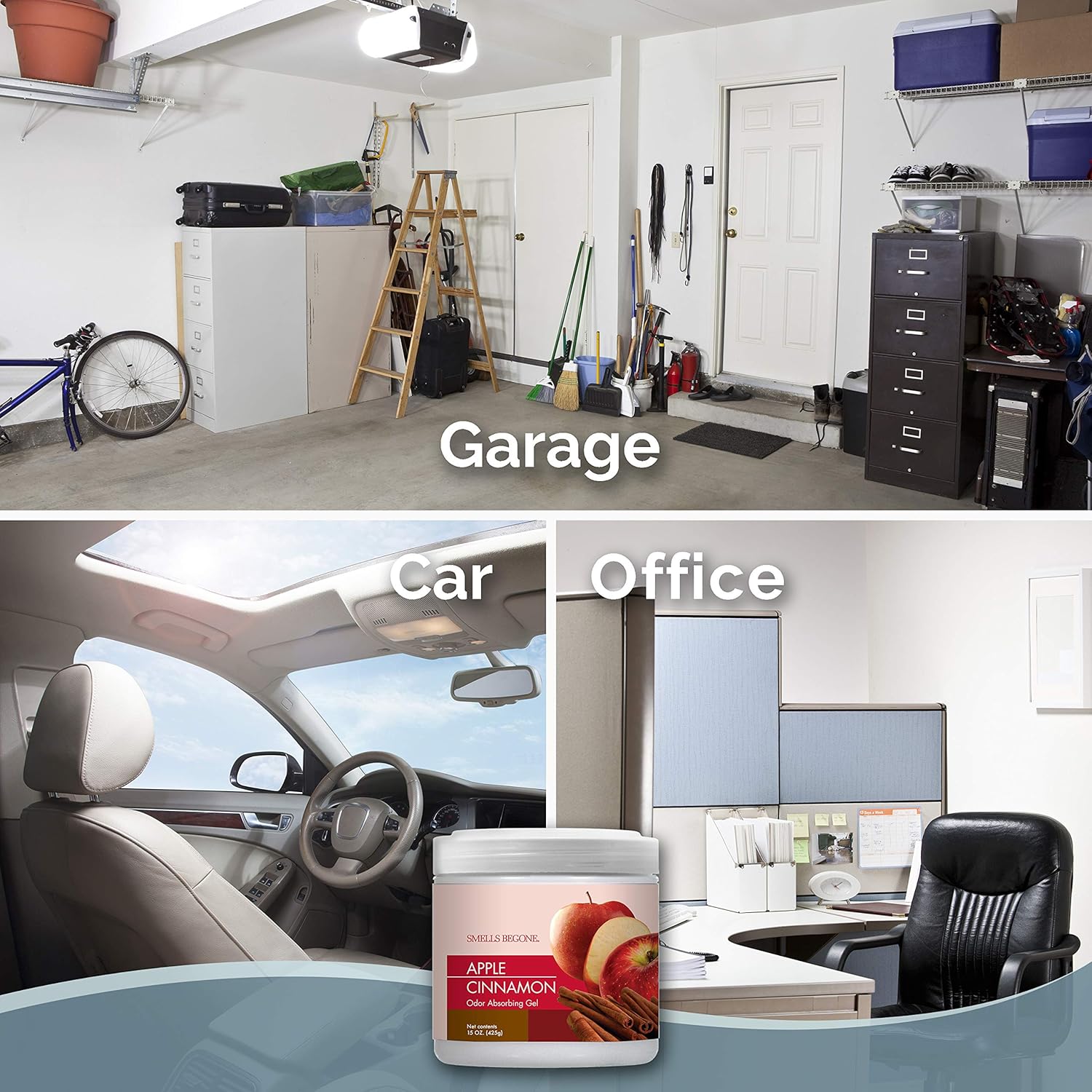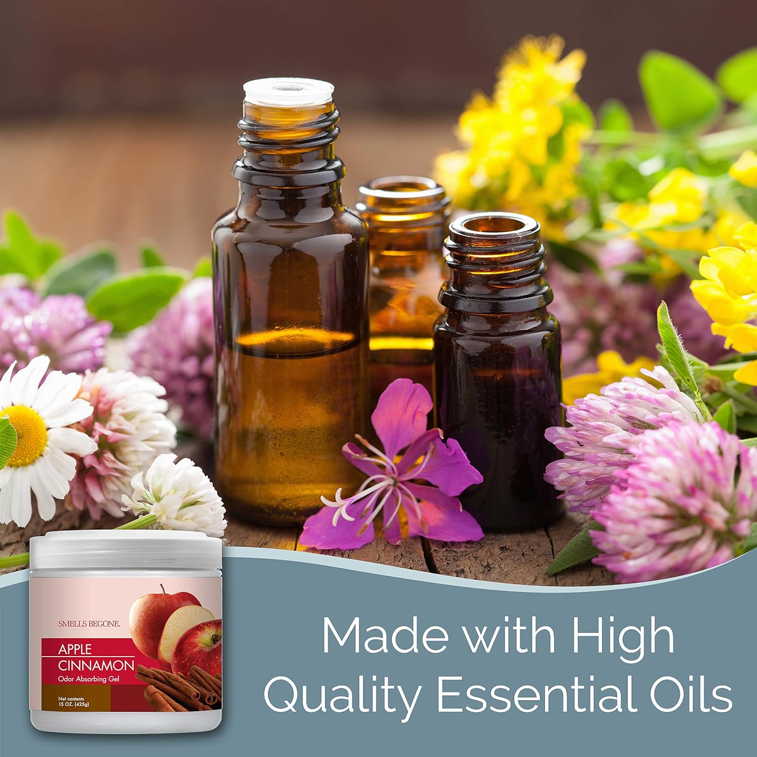 SMELLS BEGONE Air Freshener Odor Absorber Gel - 15 oz, Pack of 2 - Absorbs and Eliminates Odor in Pet Areas, Bathrooms, Cars, & Boats - Made with Essential Oils - Apple Cinnamon Scent
