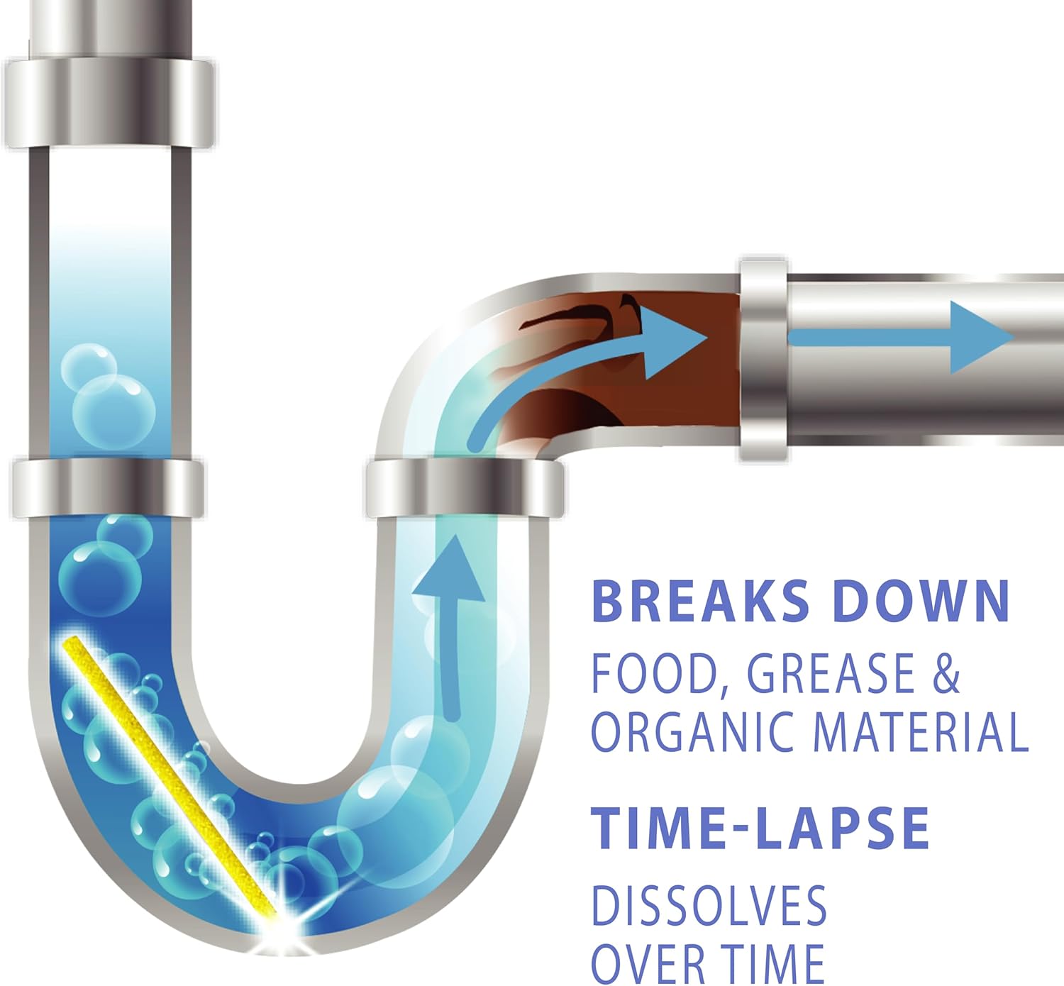 - KEEP WATER FLOWING STRONG & DRAINS ODOR-FREE: Save time and money by avoiding extra plumber visits with this effective drain-cleaner odor eliminator. Instead of wrangling with drain snakes, simply insert 1 stick a month into each of your drains to prevent water buildup and keep your drains smelling fresh.