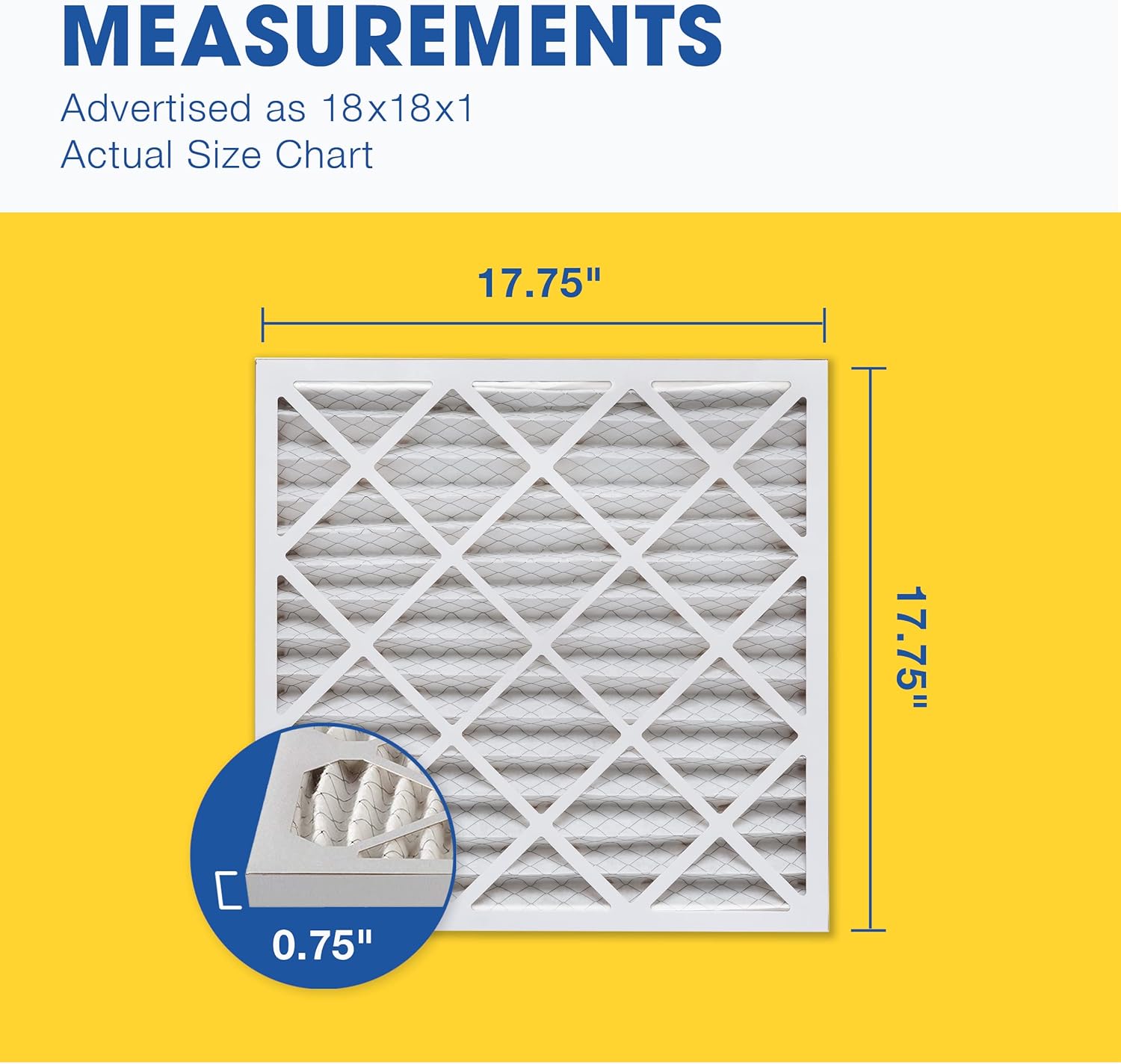 - Nominal Size: 18 x 18 x 1, Actual Size: 17 3/4" x 17 3/4" x 3/4", 18x18x1, AC and Furnace Air Filter