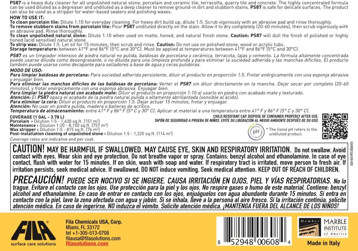 FILA Surface Care Solutions PS87 Heavy Duty Cleaner and Degreaser, 1 GAL (PS87 Heavy Duty Cleaner,), 128 Fl Oz (Pack of 1)