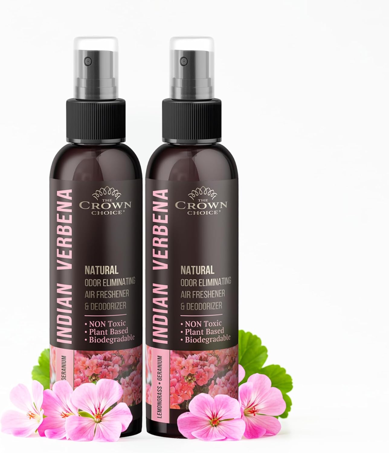 Natural Air Freshener Spray—Geranium & Lemongrass Odor Eliminator—Non-Toxic Essential Oil Deodorizer Spray for Home,Toilet,Room,Lounge,Laundry,Cabinet,Fabric;Safe for Kids & Pets—2PK- 4Oz each