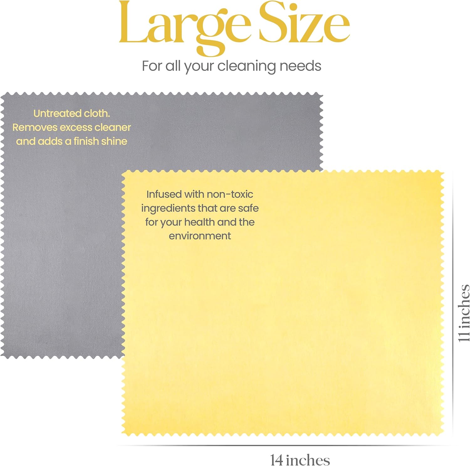 - VALUE: Use the metal care kit to clean 4 metals at home with a two-step system: yellow cloth infused with a non-toxic cleaning oil for cleaning and polish. The gray cloth included is untreated and will be used to remove any oil left in the piece that was cleaned, and add finish shine. The size of the cloths is 11 x 14 inches each, which gives enough room for proper handling of any item.