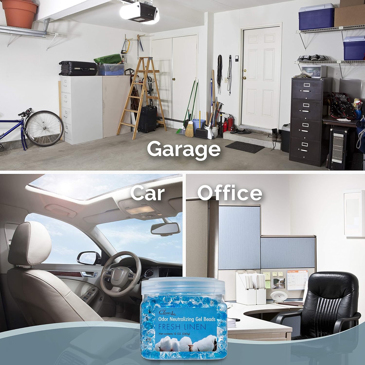 Clear Air Odor Eliminator Gel Beads - 12 oz, Pack of 2 - Air Freshener Made with Essential Oils - Eliminates Odors in Bathrooms, Cars, Boats, RVs & Pet Areas - Fresh Linen Scent