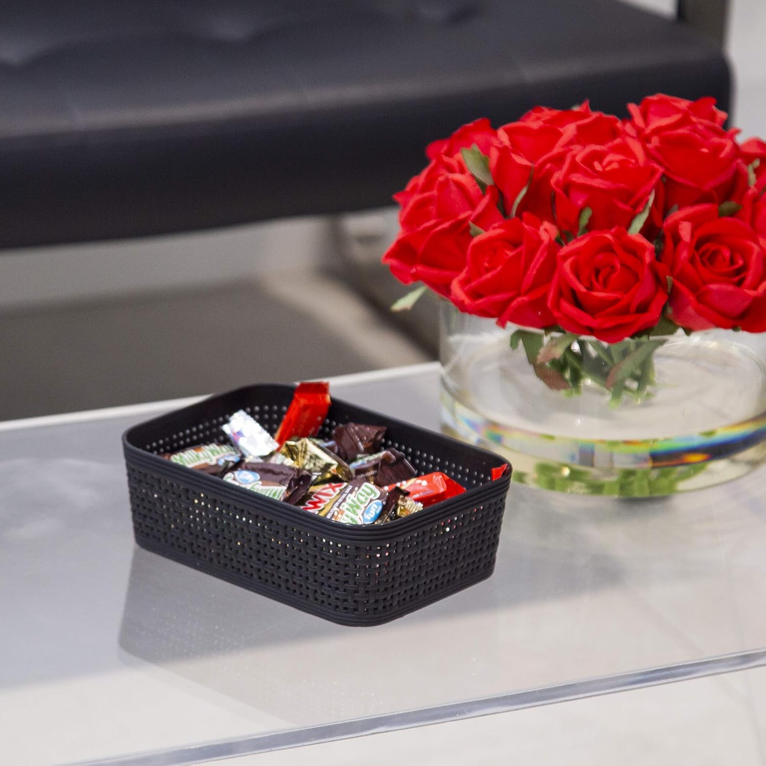 BINO | Woven Plastic Basket | XS (Black), 5-Pack | THE JUTE COLLECTION | Home Organization, Space - Saving Storage, Stylish Design | Jute Basket | Plastic Storage Basket