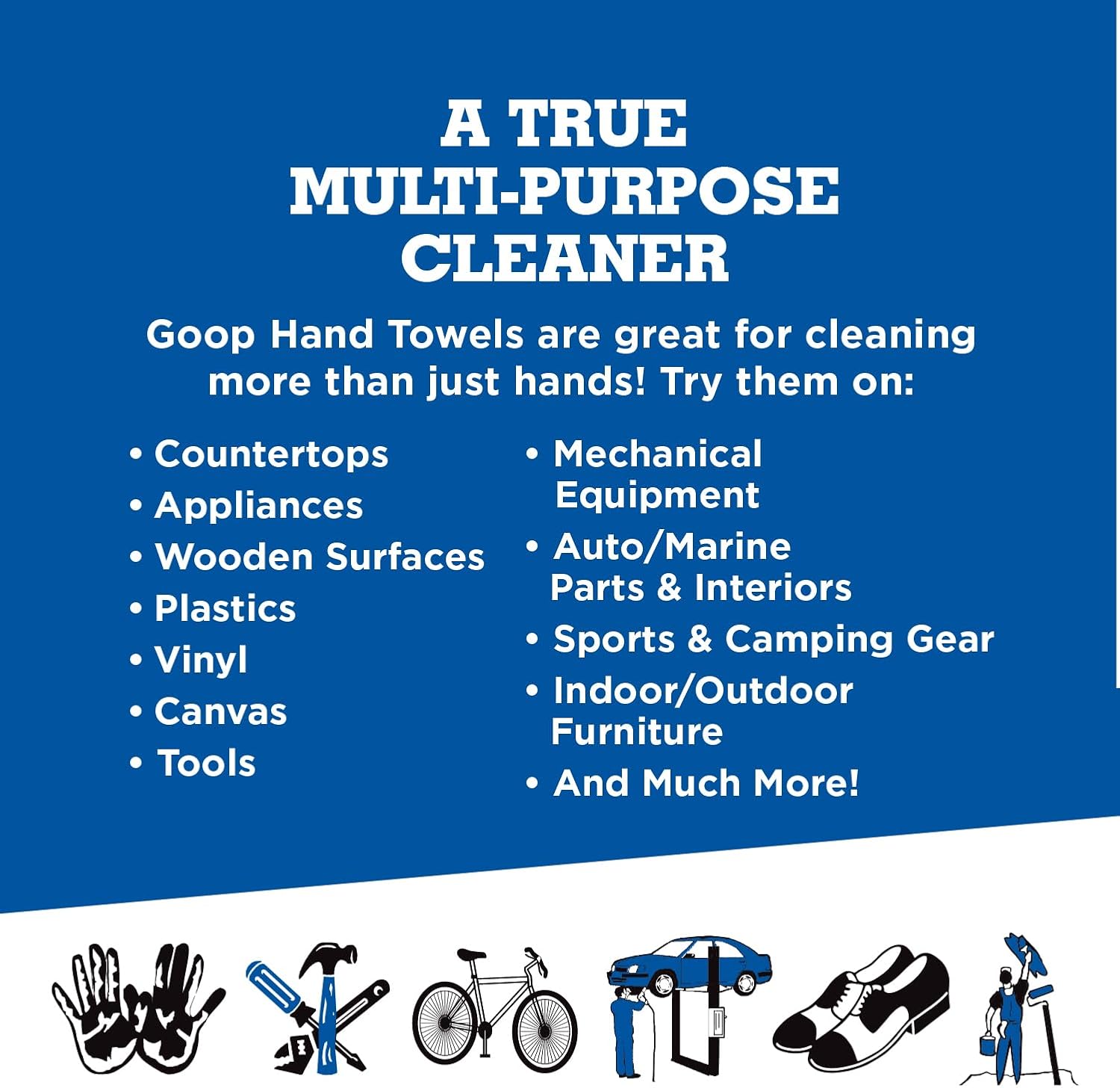 - 𝗜𝗱𝗲𝗮𝗹 𝗳𝗼𝗿 𝗵𝗲𝗮𝘃𝘆-𝗱𝘂𝘁𝘆 𝗰𝗹𝗲𝗮𝗻𝗶𝗻𝗴, these large, citrus-based pre-moistened towels are more powerful than other wet-type wipes, ensuring efficient removal of challenging substances such as grease, tar, ink, paint, and more. You can expect superior cleaning performance, thanks to the powerful formulation of Goop Towels. They effectively tackle stubborn grime and substances, making them a reliable choice for thorough and effective cleaning.