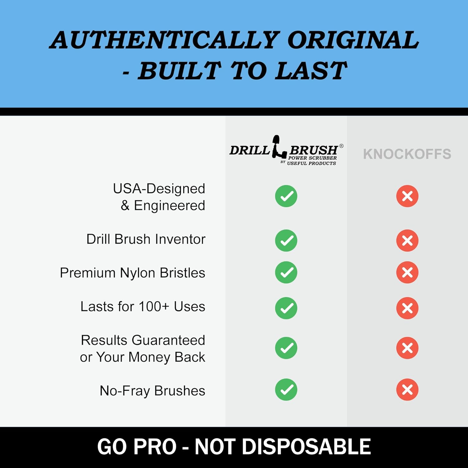 - CRAFTED BY INNOVATORS, TRUSTED BY MILLIONS - THE DRILLBRUSH STORY: Born from a real need and refined through feedback, Drillbrush Power Scrubber products are proudly made by cleaning enthusiasts for cleaning enthusiasts. With millions sold, our brush attachment for power drill lineup reflects a commitment to quality, innovation, and user satisfaction. Experience the difference with Drillbrush - inventor/innovator of the drill cleaning brush attachment set