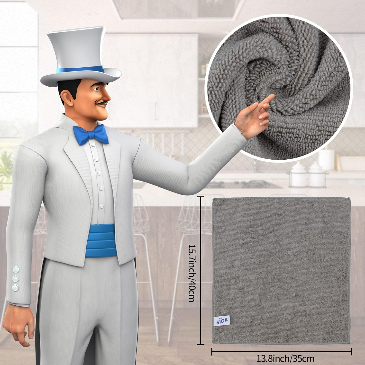 MR.SIGA Microfiber Cleaning Cloth, Pack of 6, Size: 13.8" x 15.7"