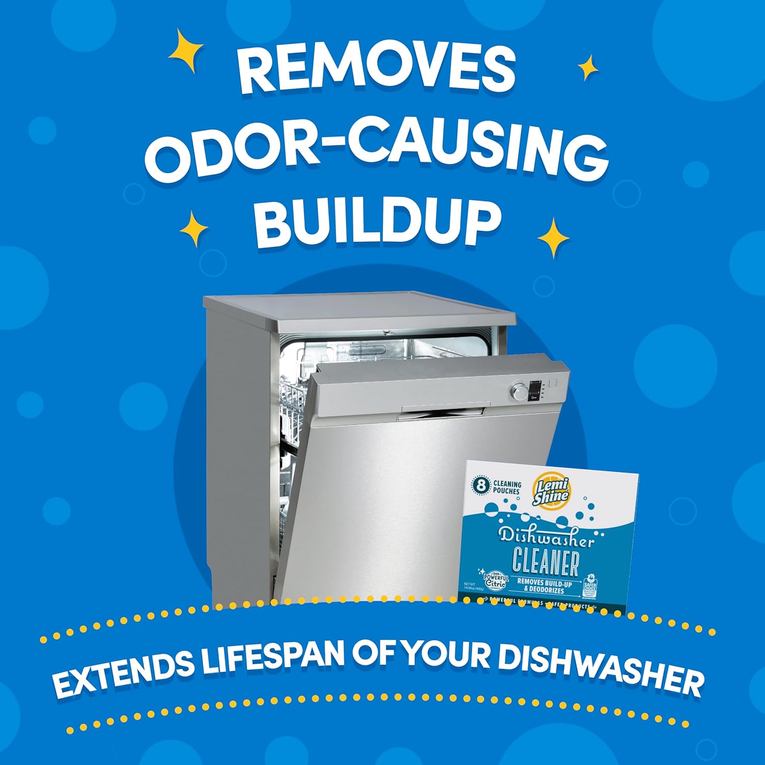 - REMOVE ODOR CAUSING BUILDUP AND FIGHT HARD WATER STAINS: The Lemi Shine dishwasher cleaner gets into hidden parts of your machine to remove odor-causing buildup, hard water stains, and leftover gunk that keeps your machine from running at its best