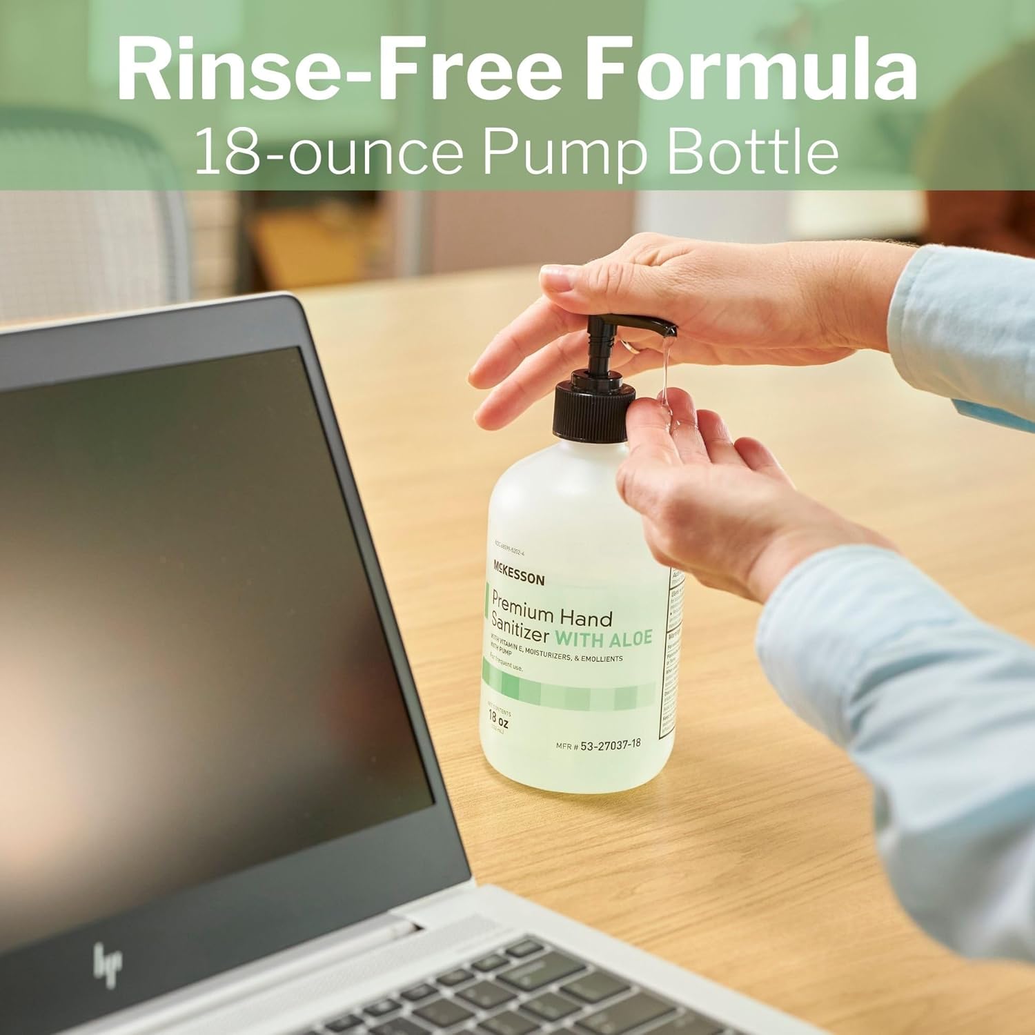 McKesson Hand Sanitizer with Aloe, 18 oz Pump Bottle – 70% Ethyl Alcohol, Spring Water Scent, No-Rinse Gel with Vitamin E and Moisturizers, Medical-Grade Sanitizer