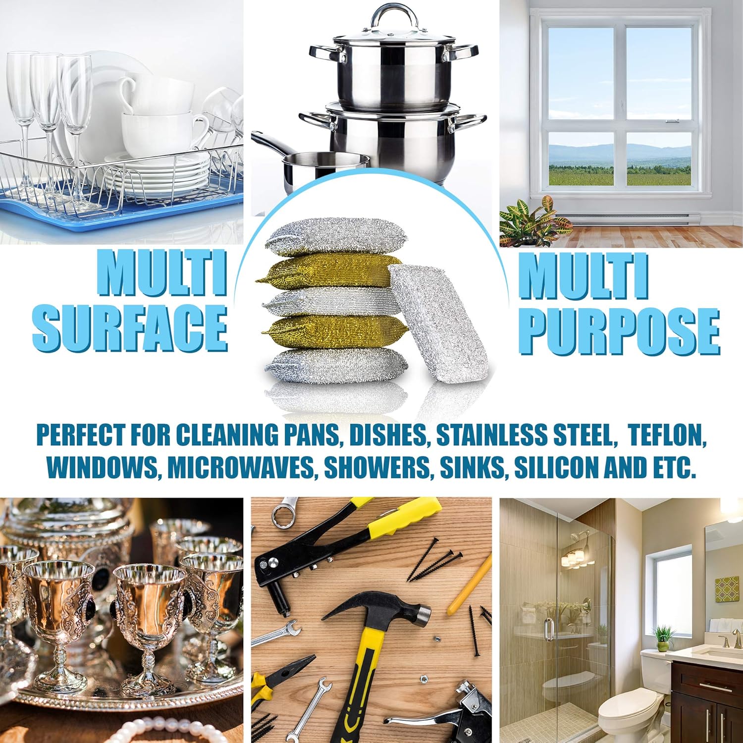 - DURABLE LONG LASTING MATERIALS: Unlike metal scrub sponges that rust easily, these polyester and polyurethane cleaner sponges will stain in excellent condition for up to 6 months (1000 uses). Each set includes 12 scrubber pads in silver and gold, so you won’t have to buy a new pack anytime soon!
