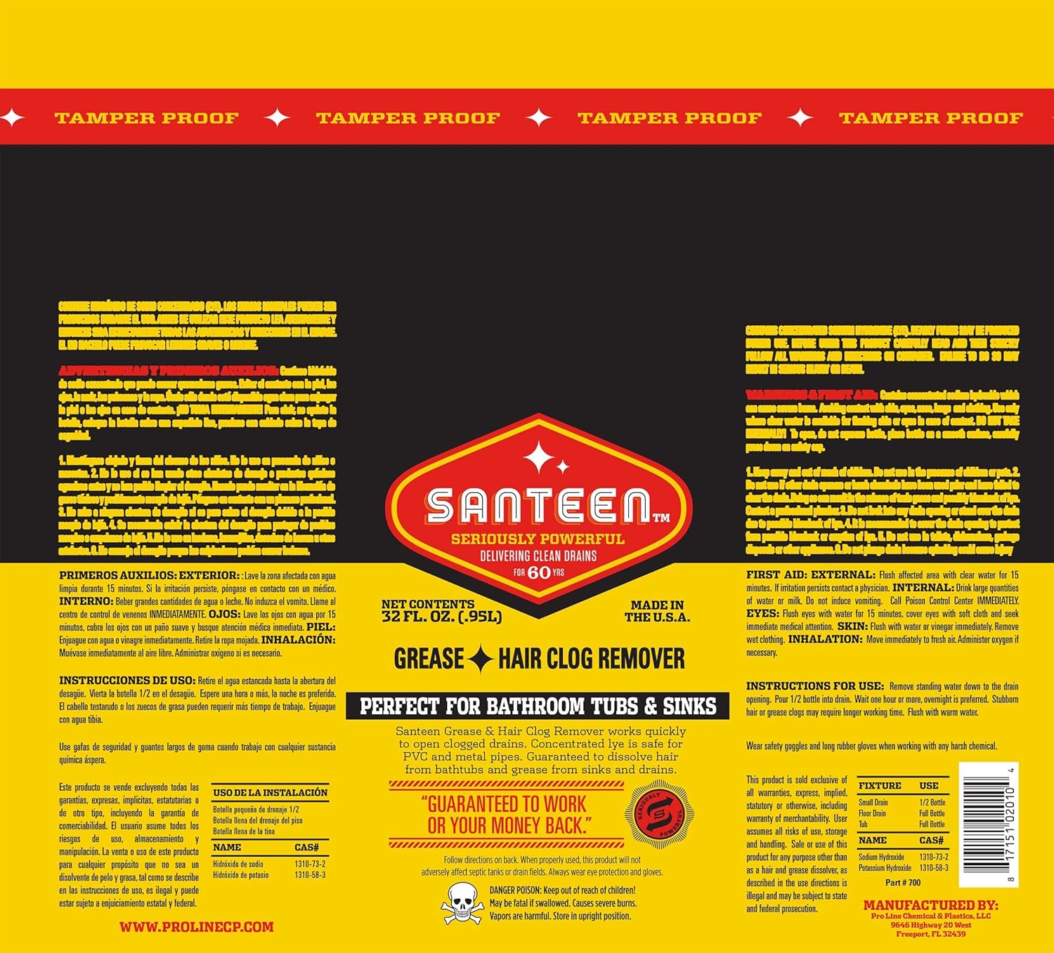 Santeen - 700-6 Grease Hair Drain Opener Quart 32oz