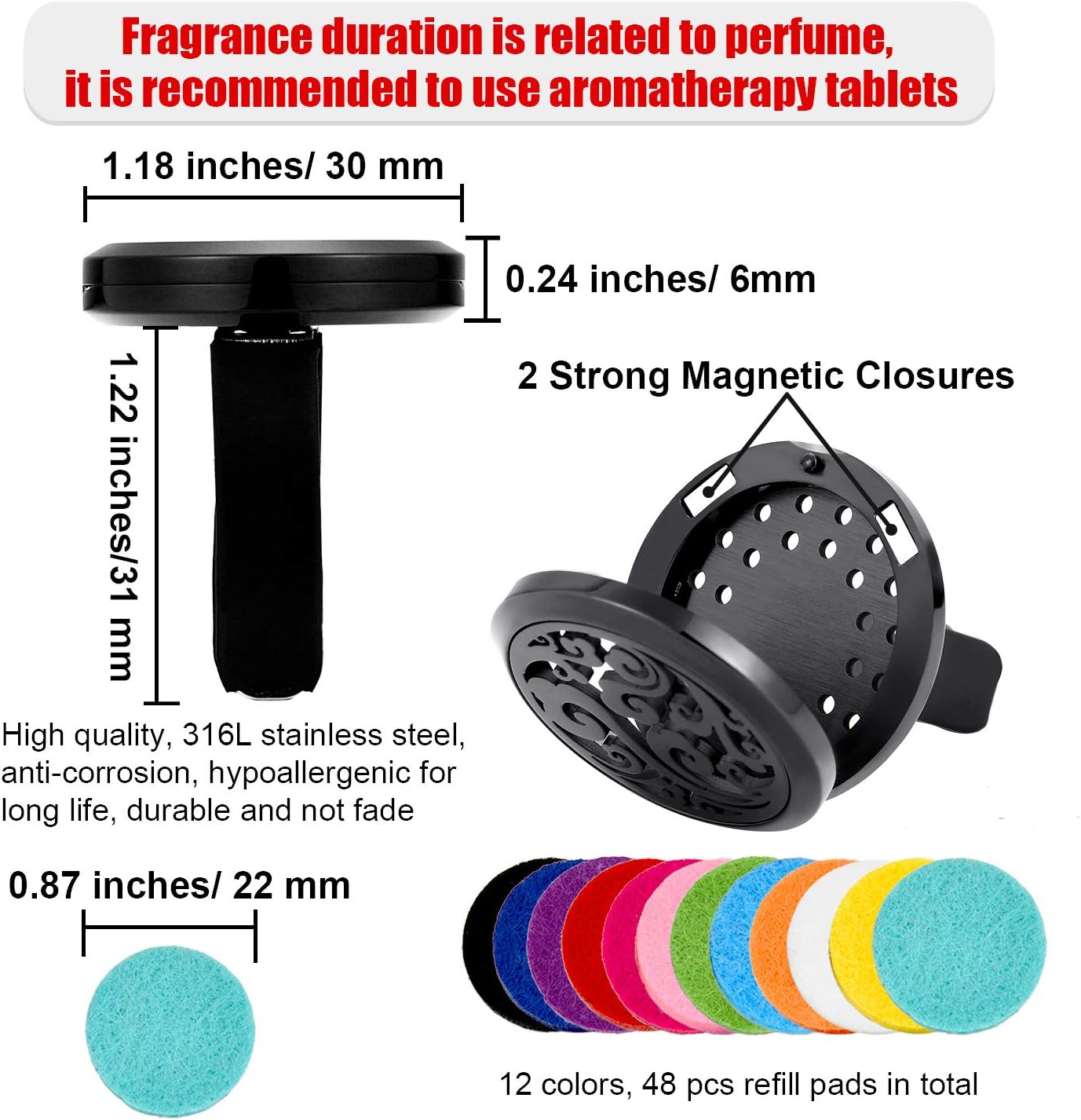 - Easy to use: add the essential oils on the replaceable felt pad and clip it to the car vent, turn on the ventilation of your car for a boost of fragrances