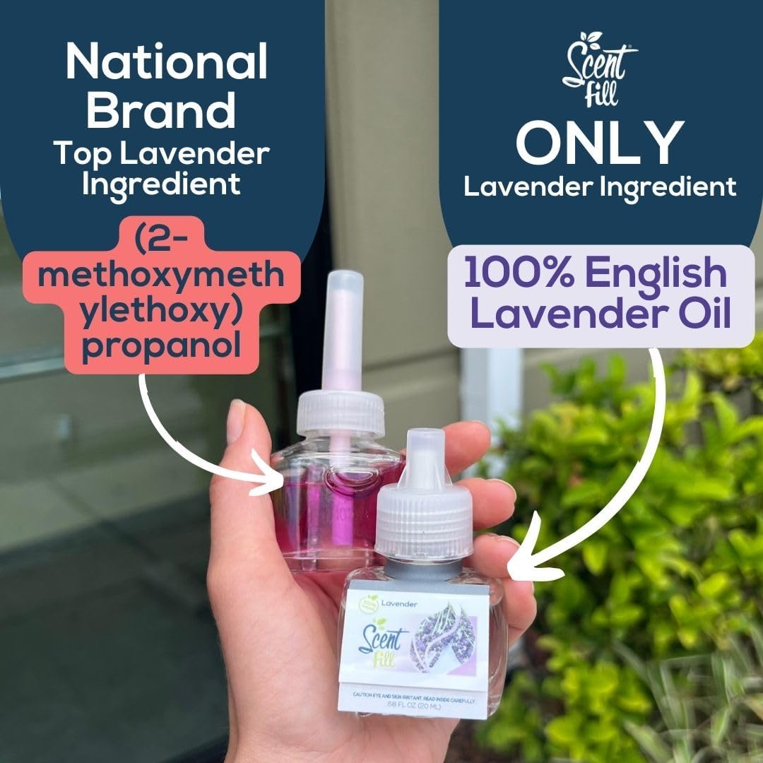 Scent Fill 100% Natural Lavender Plug in Air Freshener, Scented Oil Refills, 2 Refills + Diffuser