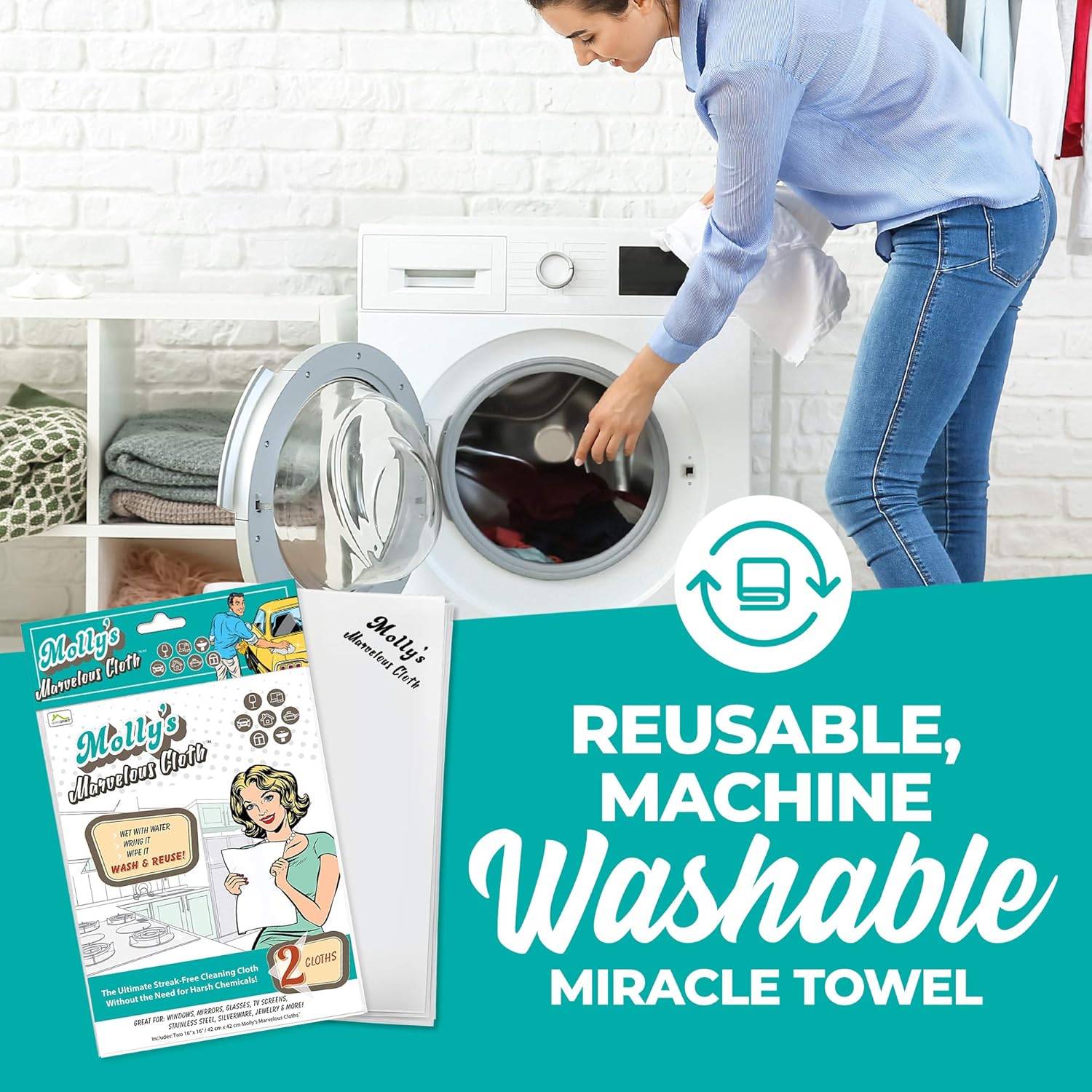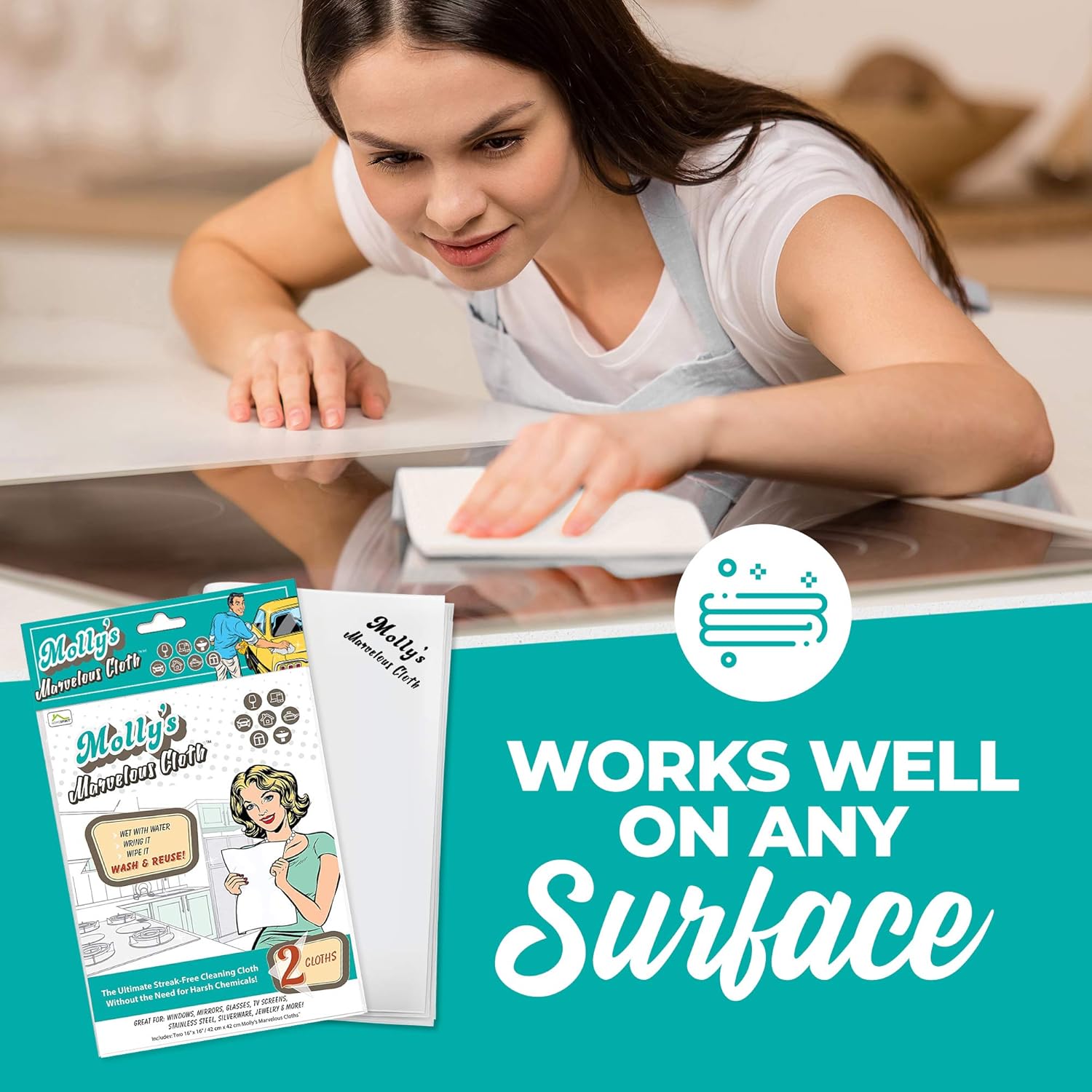 - NO MORE CHEMICALS, USE WATER ONLY, save your sprays, paper towels and cleaners, simply wet it, wring it and wipe! No more chemicals, no more soggy towels and no more smelly rags. Just a mirror shine every time. Molly’s is great in any room of the house and any surface you want to clean or polish. In the living room Molly’s is great for dusting and polishing fine wood or table tops and easily cleans and polishes all your televisions, tablets, phones and computers in record time.
