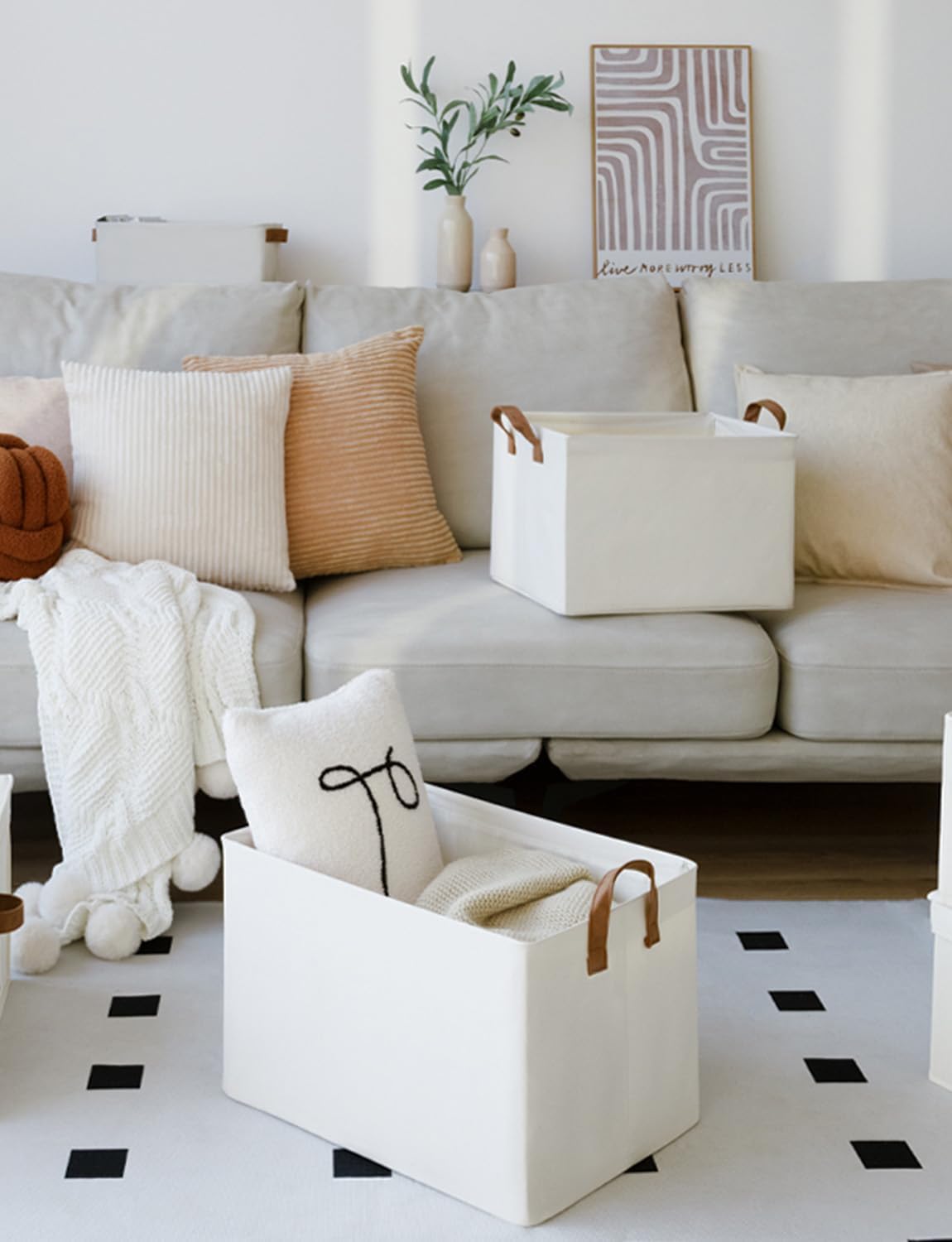 - Handle with Ease: With the 2 PU handles securely riveted to the sides of the storage bin, you can easily carry items without tearing the handles.