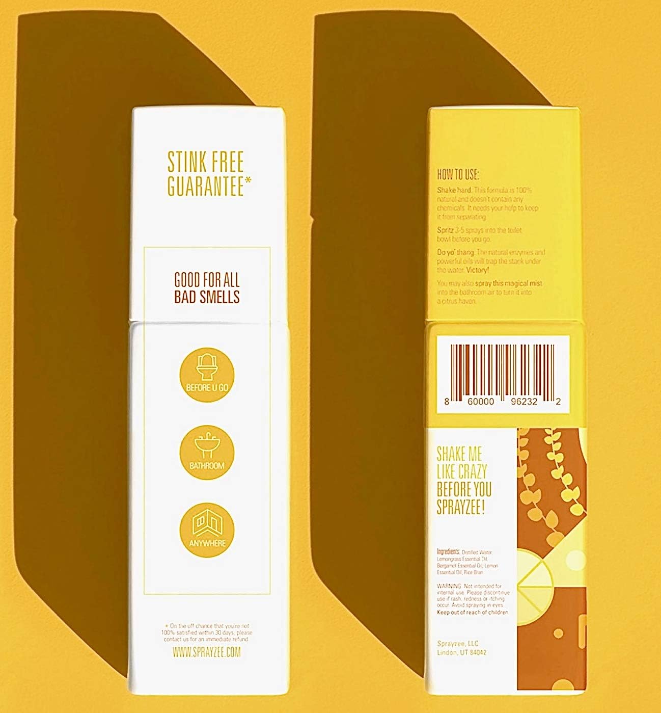 - ๐ฝ ๐ง๐ฟ๐ฎ๐ฝ ๐๐๐ ๐ง๐ต๐ฒ ๐ฆ๐๐ฎ๐ป๐ธ ๐๐ป ๐ง๐ต๐ฒ ๐ง๐ฎ๐ป๐ธ โ Sprayzee toilet spray deodorizer was scientifically formulated to trap your stank 100% โ not mask it. Made with the most powerful enzymes and oils which form a stink-barricade on the water's surface, it traps even the worst poop smells and sends it to the great below never to be smelled again.
