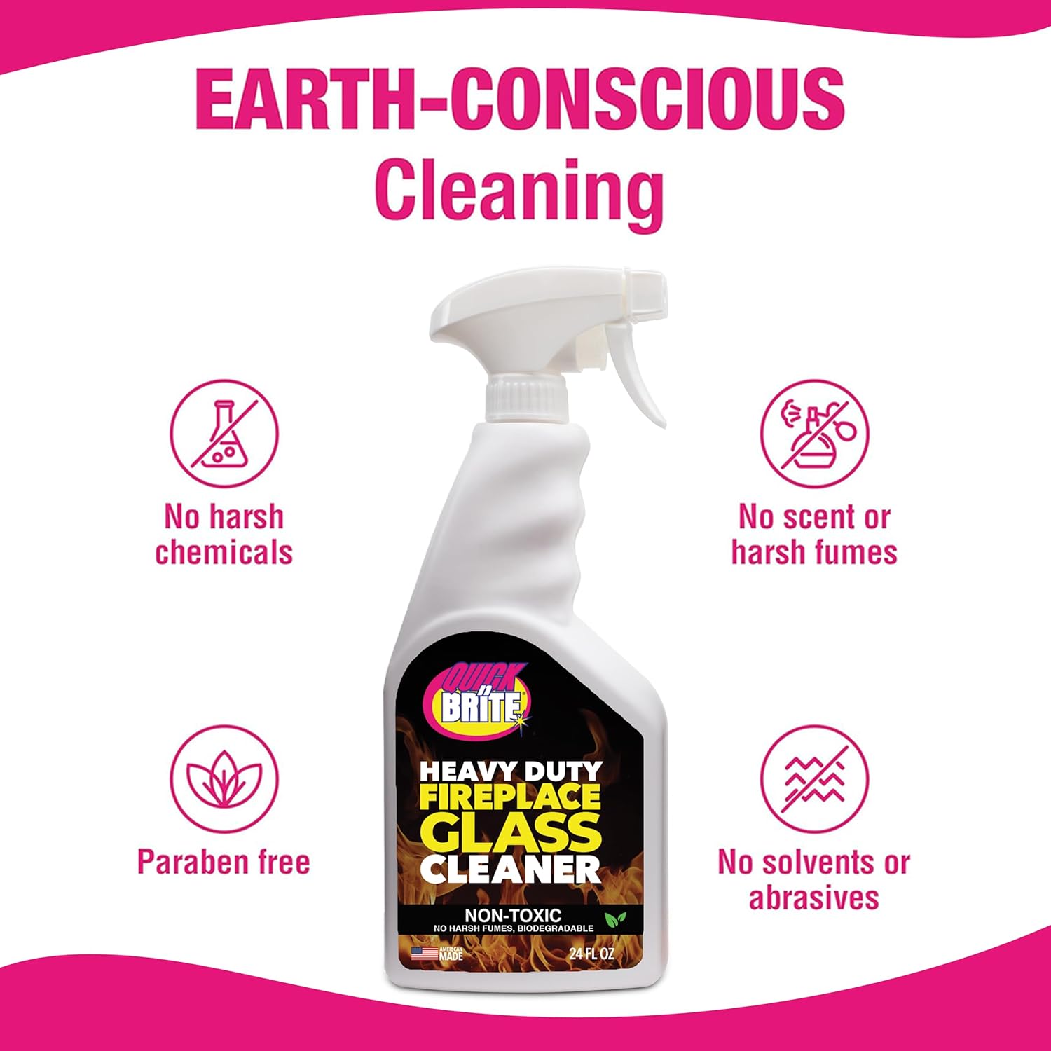 Quick N Brite Fireplace Glass Cleaner 24oz, with Sponge and Microfiber Towel