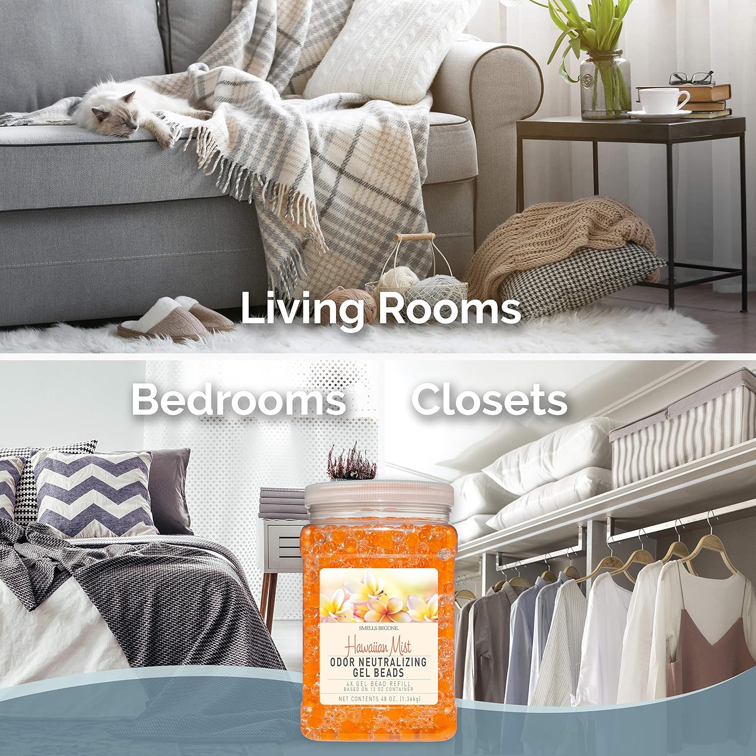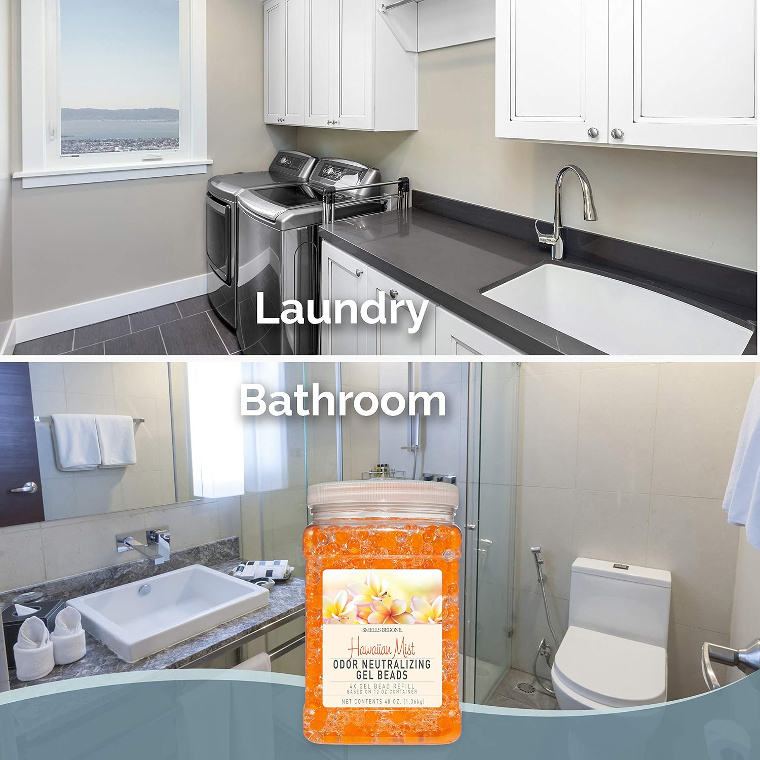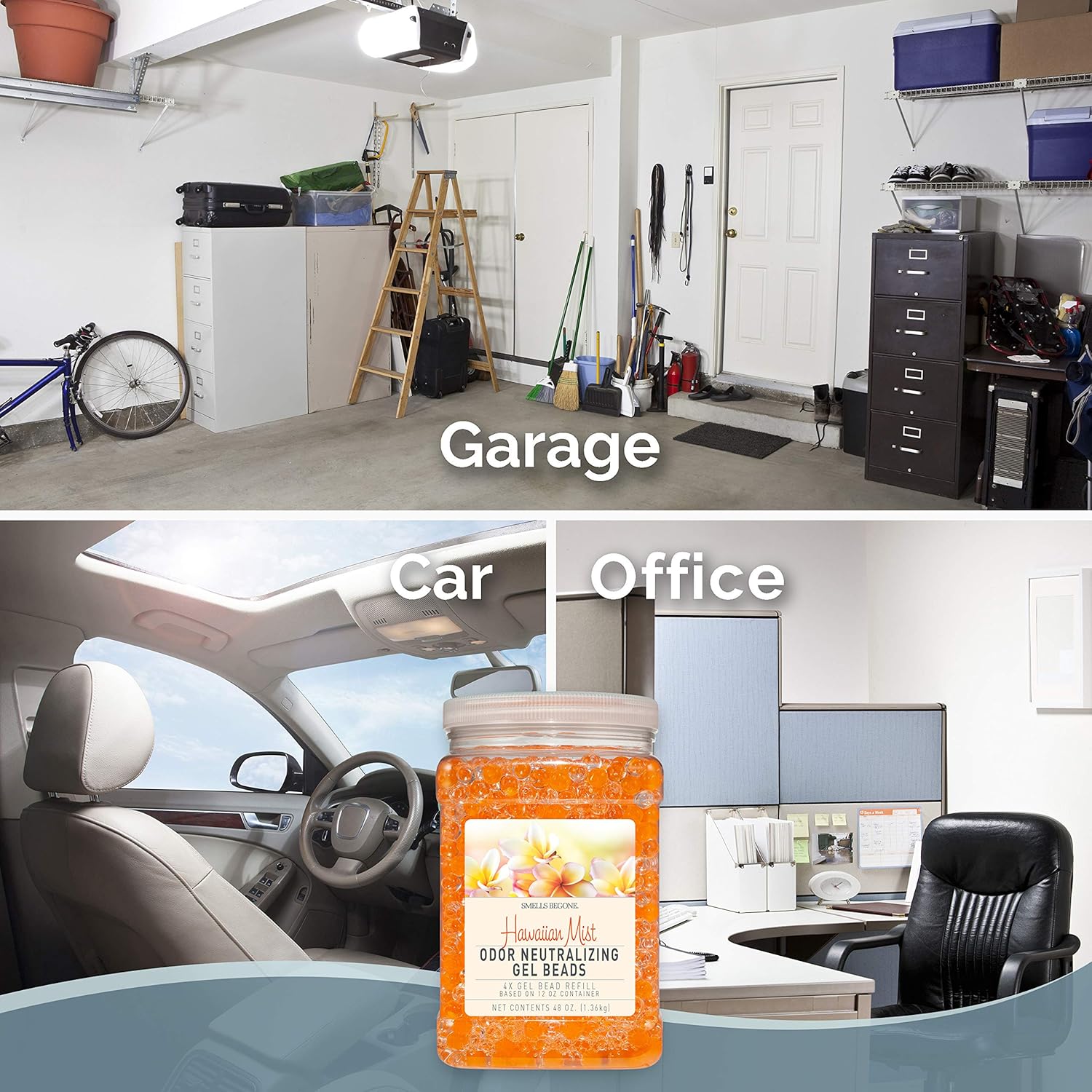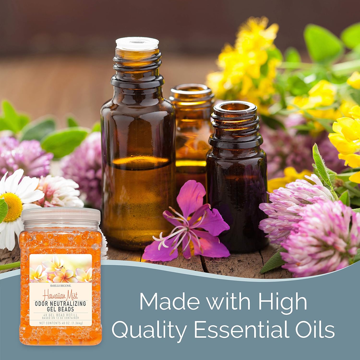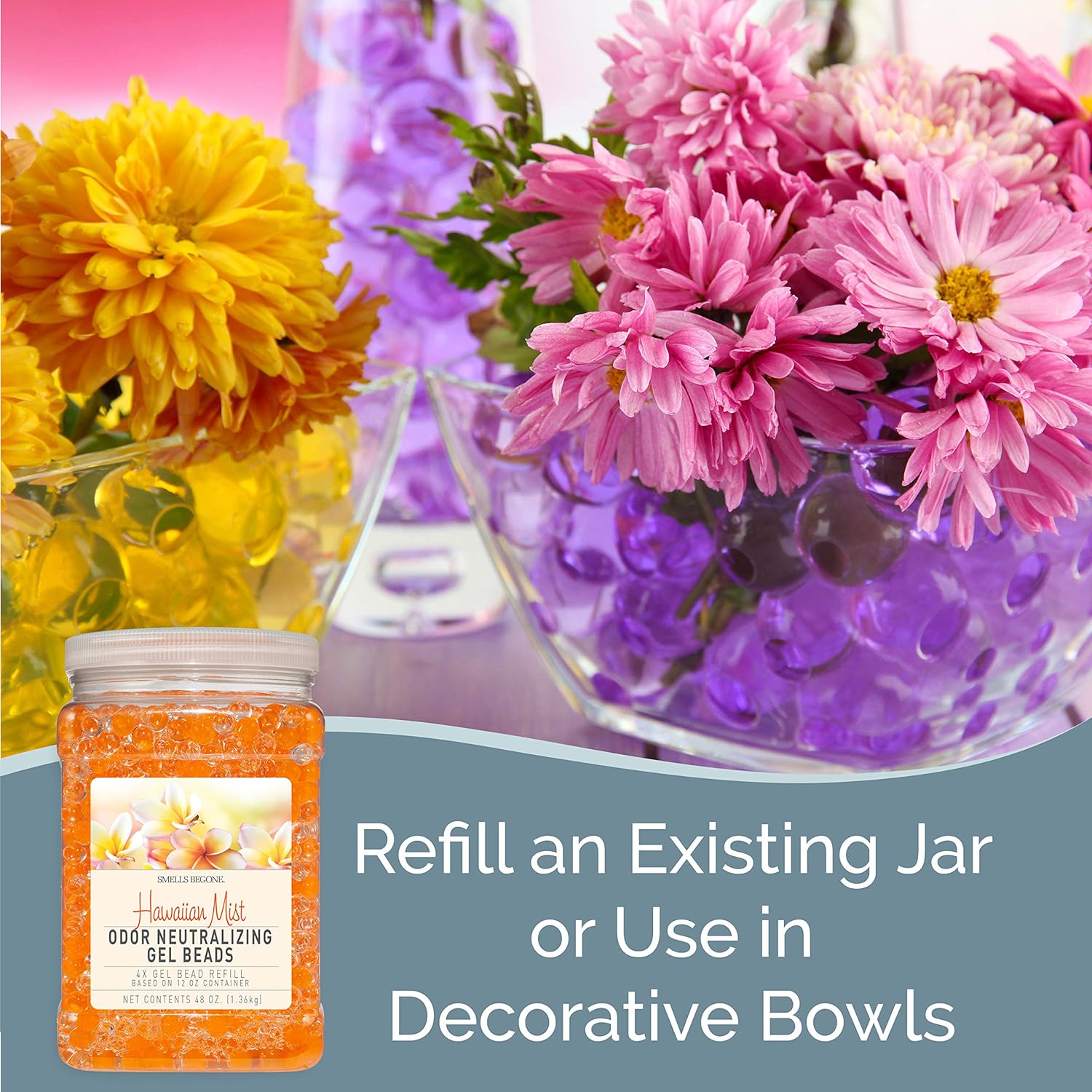 SMELLS BEGONE 48 oz Odor Eliminator Gel Bead Refill - Eliminates Odors from Bathrooms, Cars, Boats, RVs & Pet Areas - Air Freshener - Made with Essential Oils - Hawaiian Mist Scent