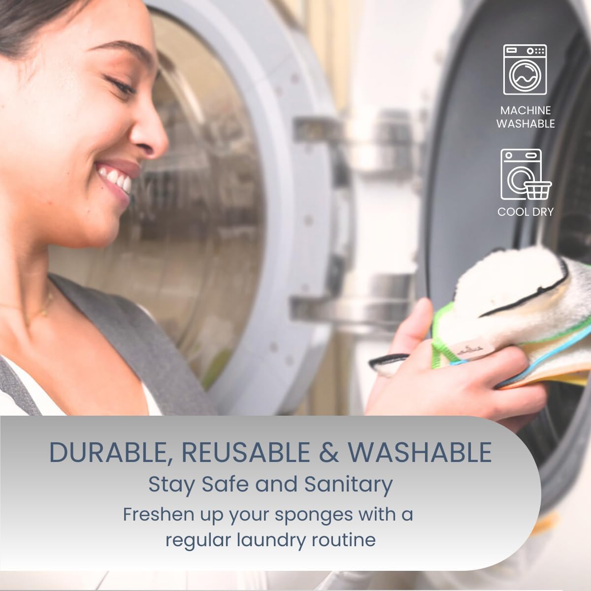 - WASHABLE & BUILT FOR LONG-LASTING USE: Whiffkitch Bamboo Fiber Kitchen Sponges are designed with durability in mind, featuring strong stitching and a foam core that maintains its shape after repeated washes. As a washable sponge and part of a durable kitchen sponges pack, they’re a smart choice for households aiming to minimize waste and cut down on frequent replacements.