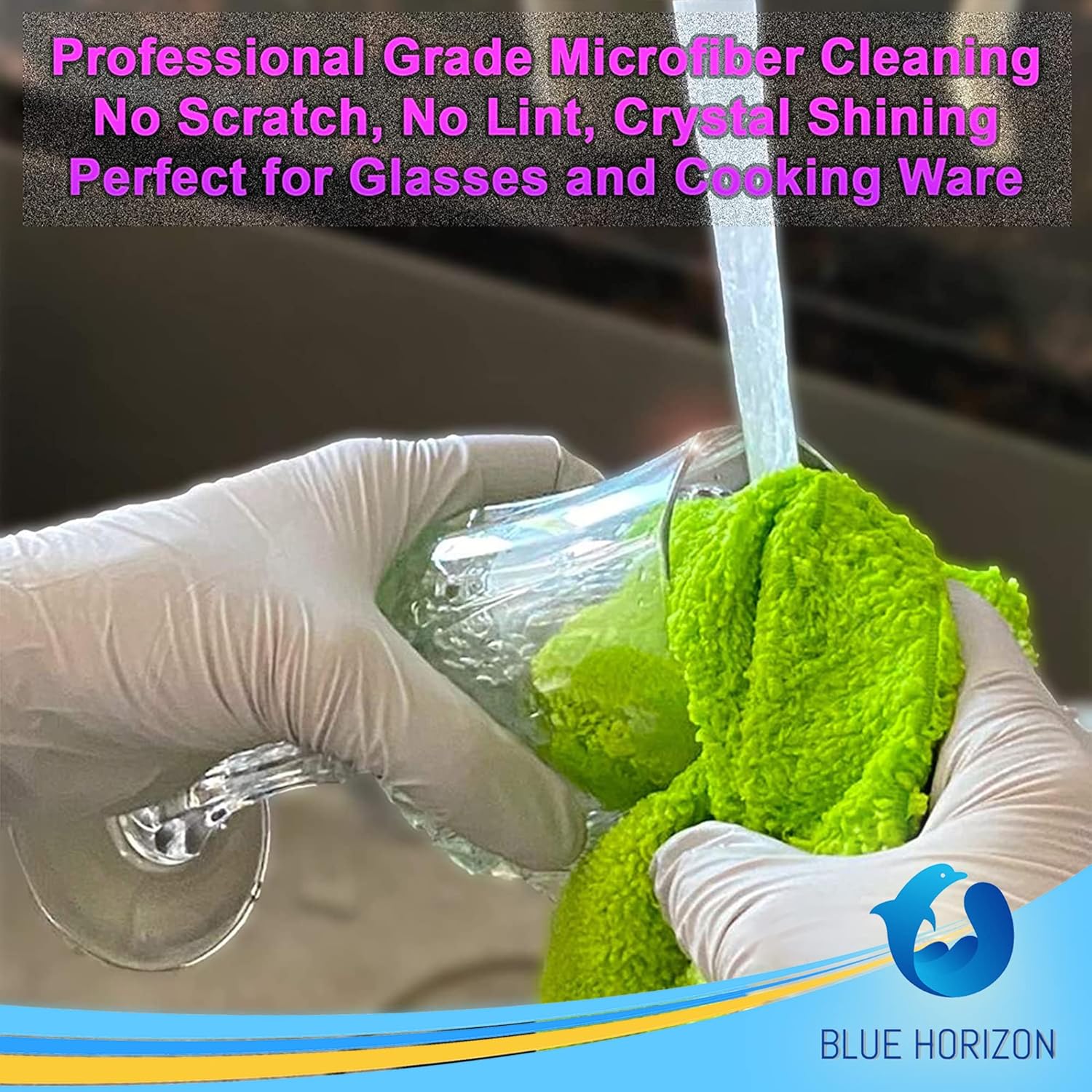 Blue Horizon Large Microfiber Cleaning Towels, 36-Pack Wash Cloths, Ultra Soft Plush Microfiber Cleaning Cloth, Products (Green, 16" X 16")