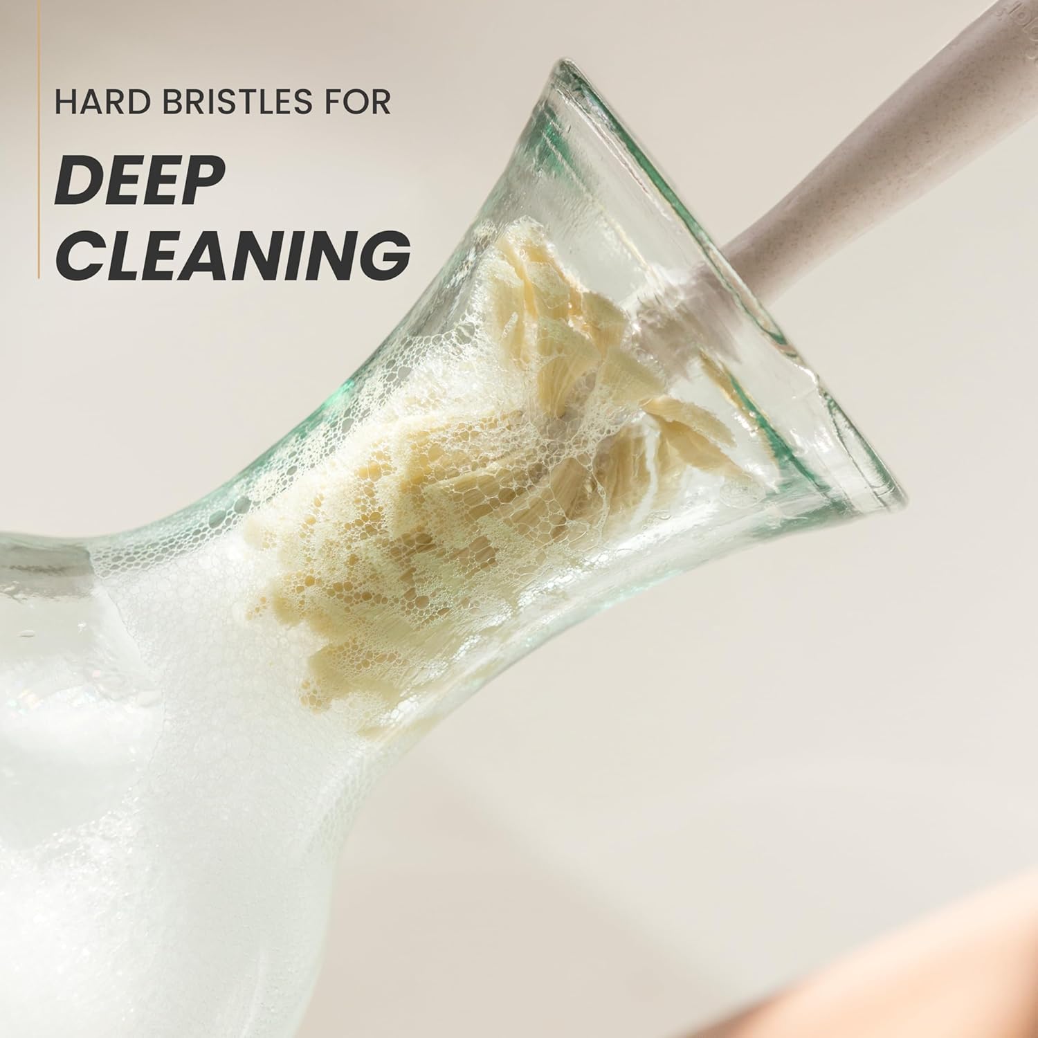 - Multipurpose Scrub Brush: A scrub brush with long handle, 10.2-inch long, designed to clean glass water bottle to a spotless shine. Its extended neck effortlessly reaches inside blender bottle, champagne flutes, glasses, vases, jugs, and jars.