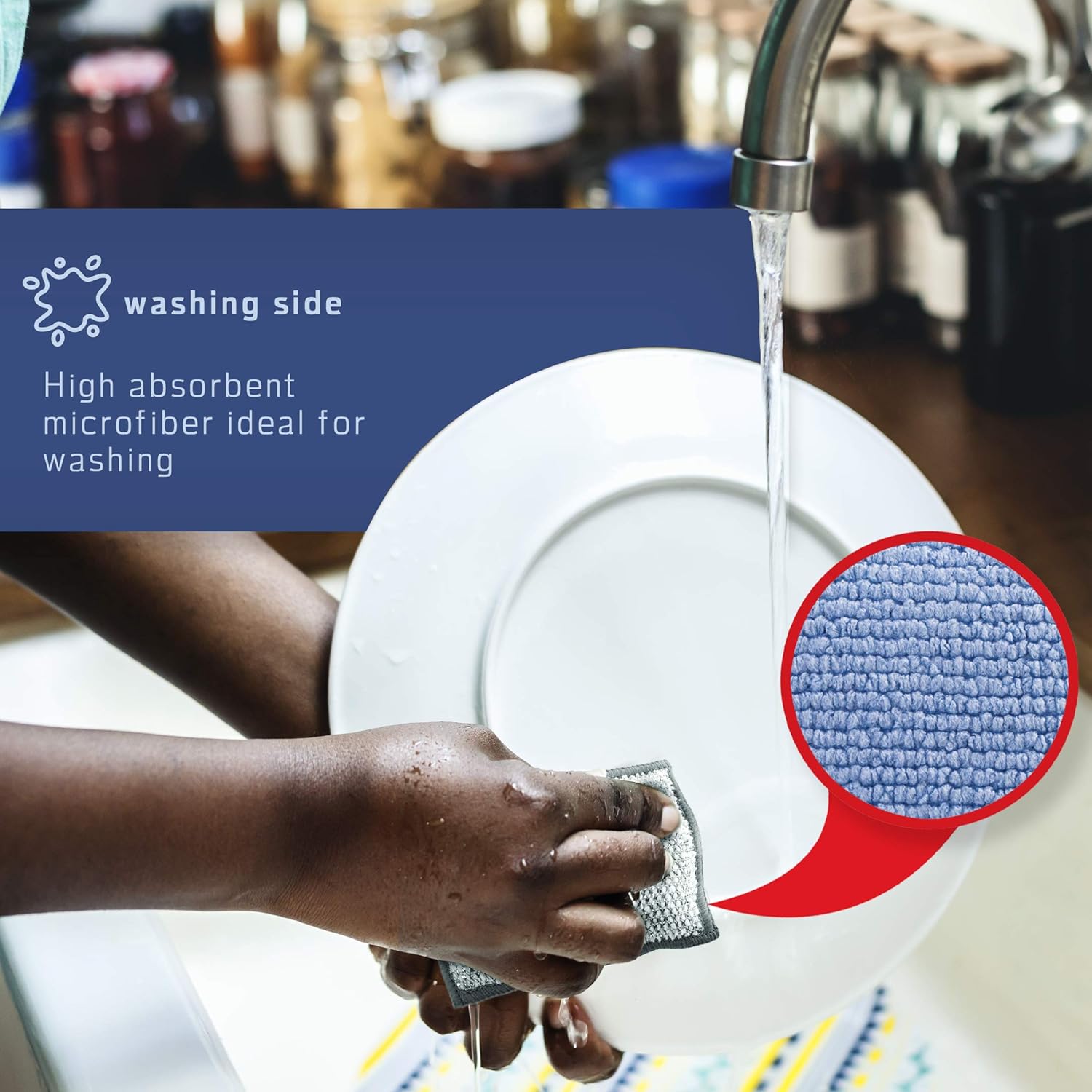 2-Sided Premium Microfiber Dish Sponge and Scrubber 3 Pack Variety - Heavy Duty Scouring Non-Scratch Multi-Surface