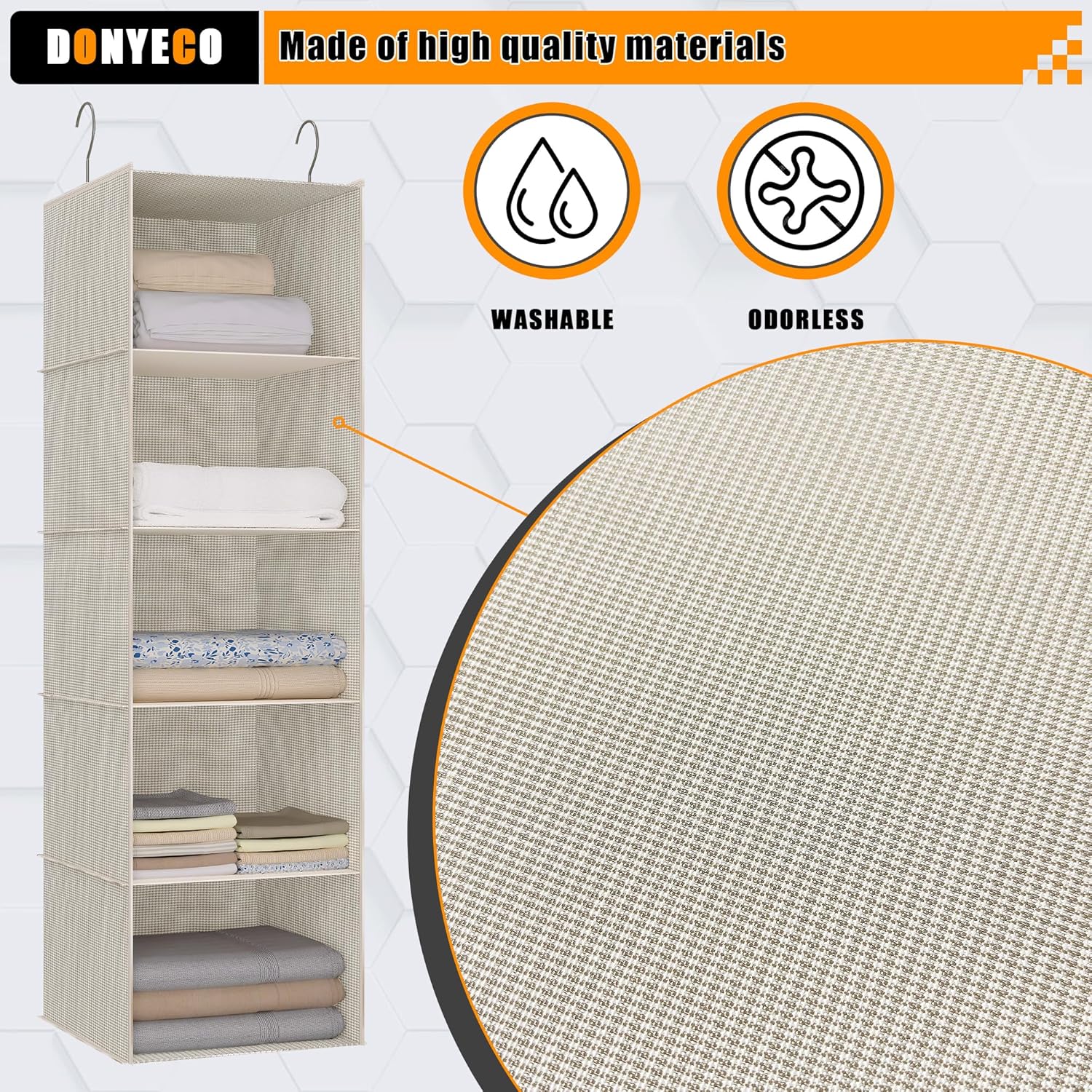 Hanging Closet Organizer, Easy Mount Foldable 5-Shelf Hanging Closet Wardrobe Storage Shelves, Clothes Handbag Shoes Accessories Storage, Imitation Linen Fabric, Beige Houndstooth