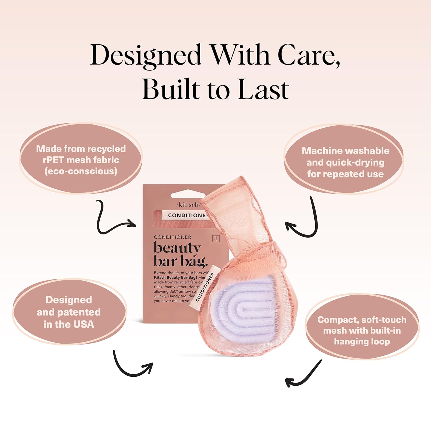- FUNCTIONAL & EASY TO USE SOAP POUCH – The Kitsch soap bag is expertly designed with labeled pouches for body wash, shampoo, and conditioner bars, so you’ll never mix them up. This versatile soap pouch hangs neatly in your shower for effortless organization.