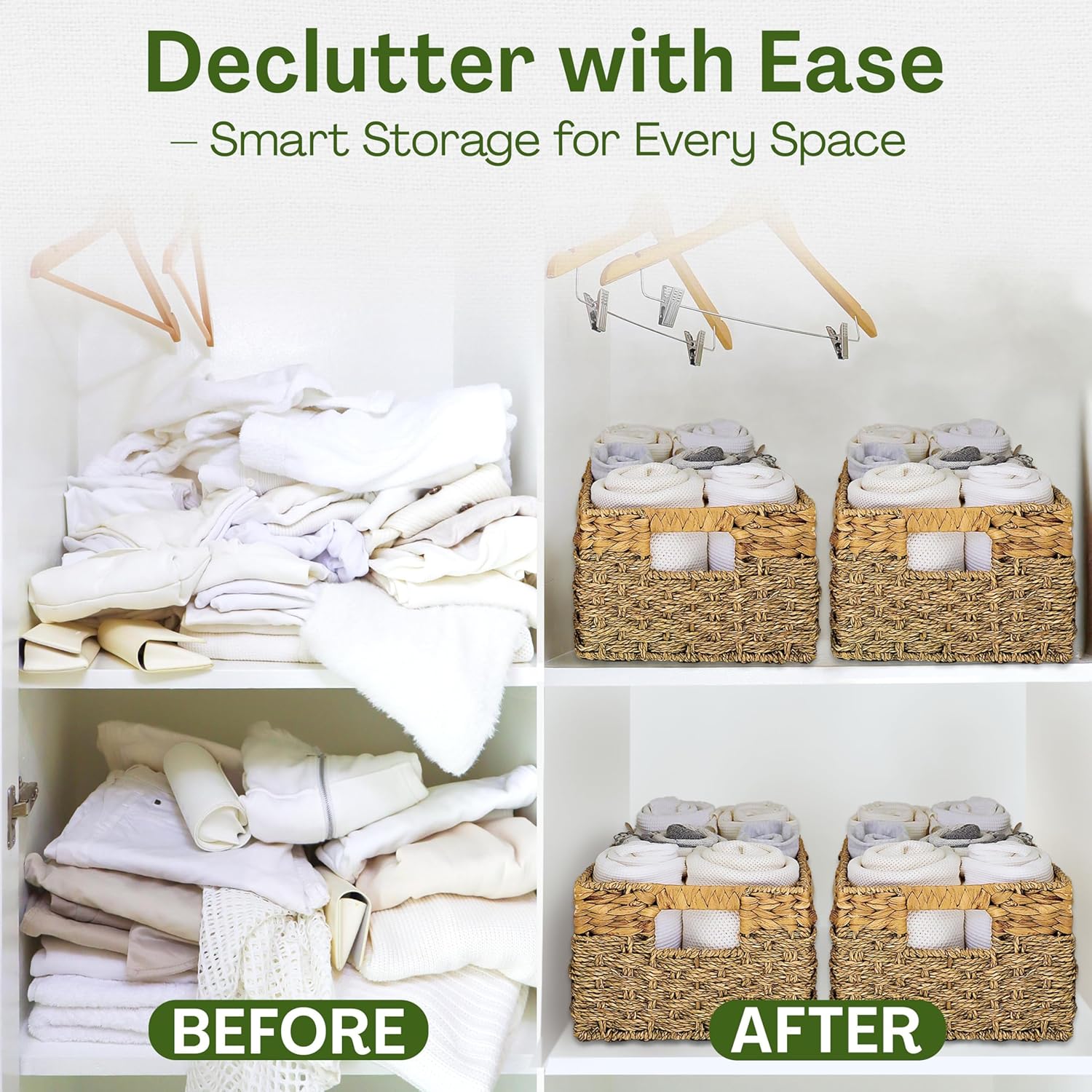 - NATURALLY SAFE AND BEAUTIFUL - Bring warmth and charm with a medium wicker storage basket, natural seagrass and hyacinth, chemical-free and eco-friendly. The rectangle basket boasts a smooth, woven finish, ensuring lasting beauty without fraying or sharp edges.