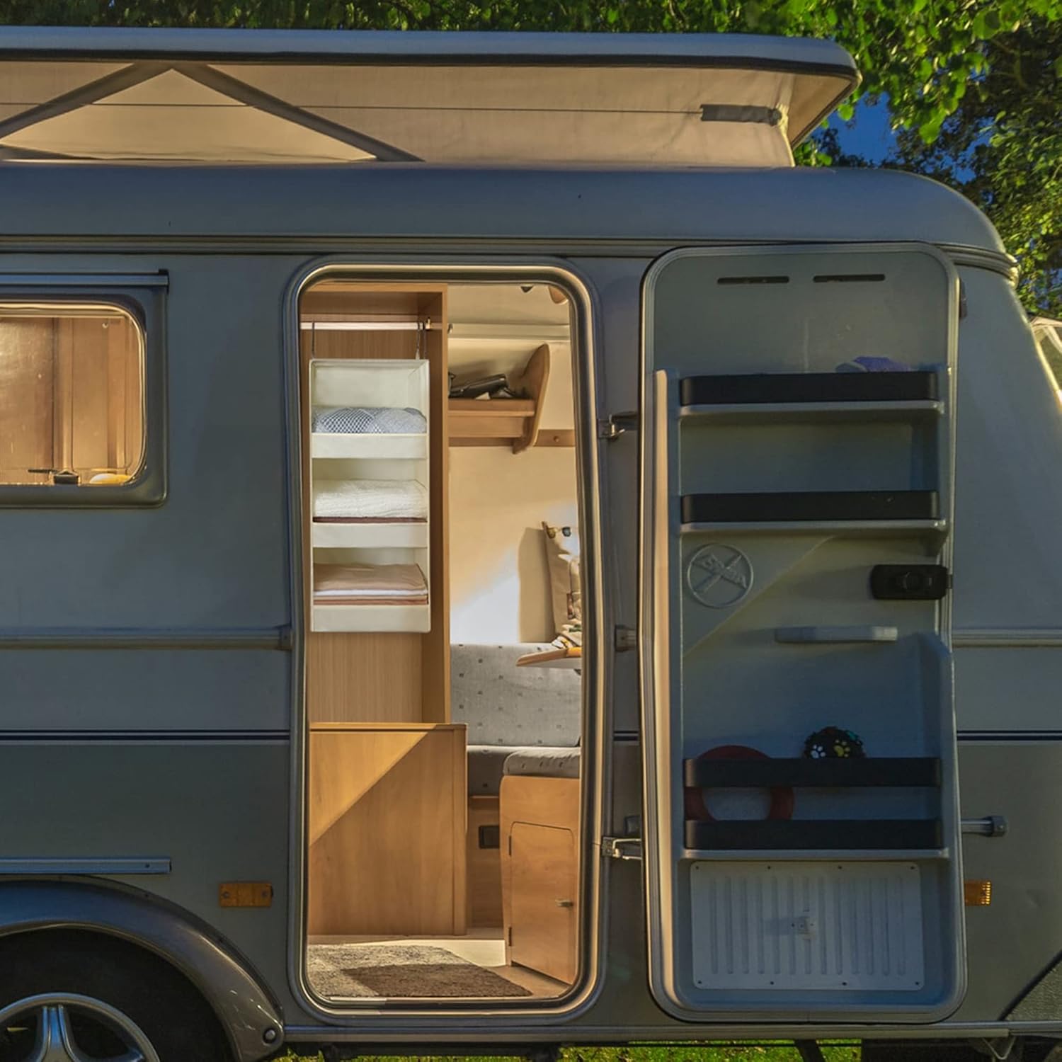 - 3-shelf organizer works great in closets, shelves, wardrobes, RVs, camper trailers for storing towels, T-shirts, socks, accessories, bibs, diapers, baby wipes, etc.
