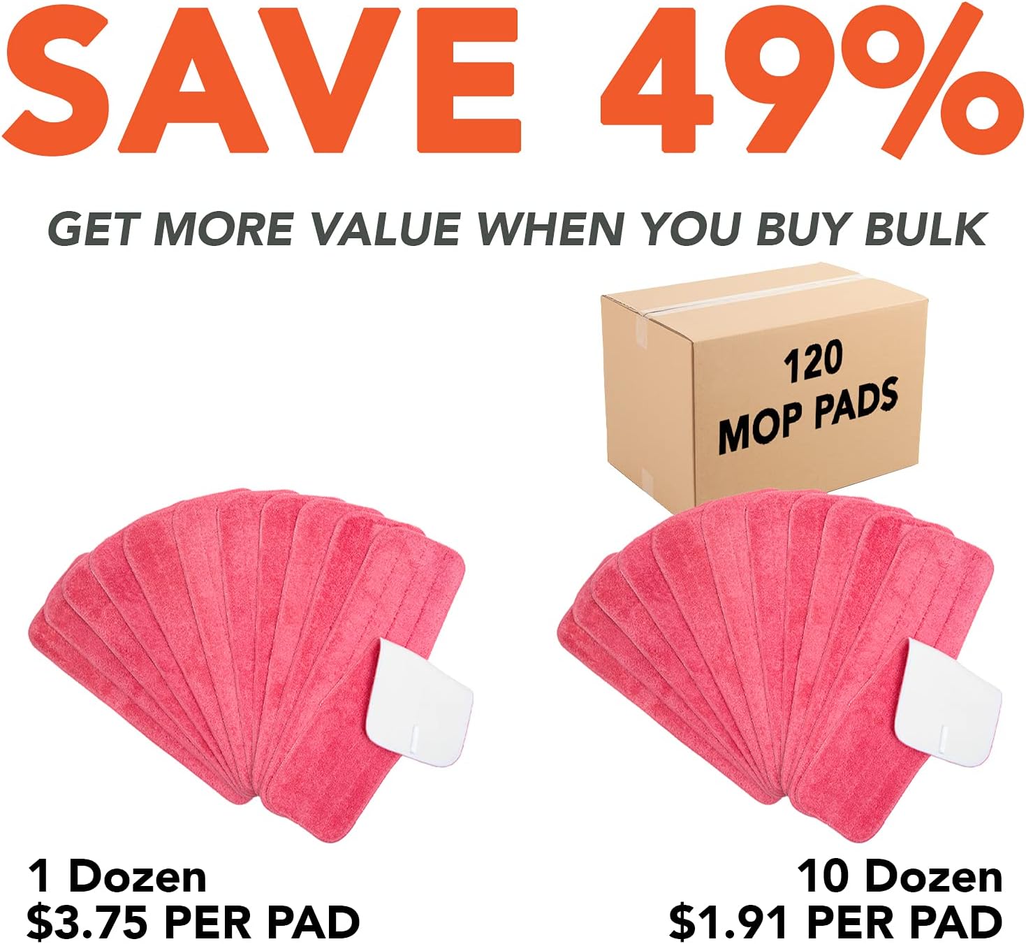 Arkwright Spray Mop Replacement Pads - (Case of 120) Bulk Microfiber Flat Dry and Wet Refill Mop Pads Floor Cleaning, Compatible with Bona and Rubbermaid, Fits All Mop Heads, 18 in, Red