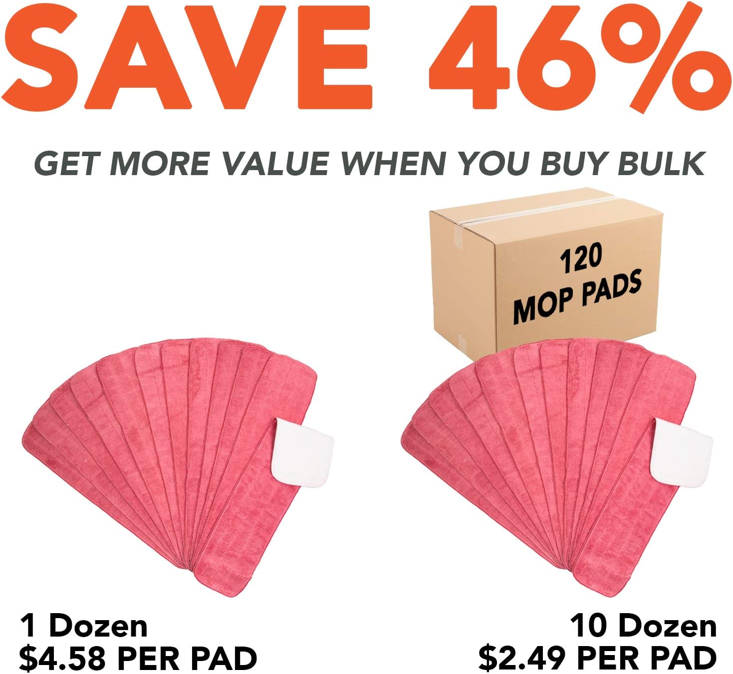 Arkwright Spray Mop Replacement Pads - (Case of 120) Bulk Microfiber Flat Dry and Wet Refill Mop Pads Floor Cleaning, Compatible with Bona and Rubbermaid, Fits All Mop Heads, 24 in, Red