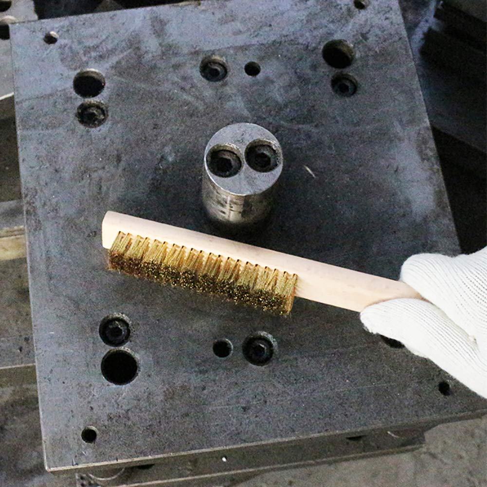 - Premium Brass Bristles: Our brass wire brush features soft brass bristles, making it ideal for cleaning metal surfaces without scratching or damaging delicate items. Perfect for cleaning welding spatter, slag, tool maintenance, and more.