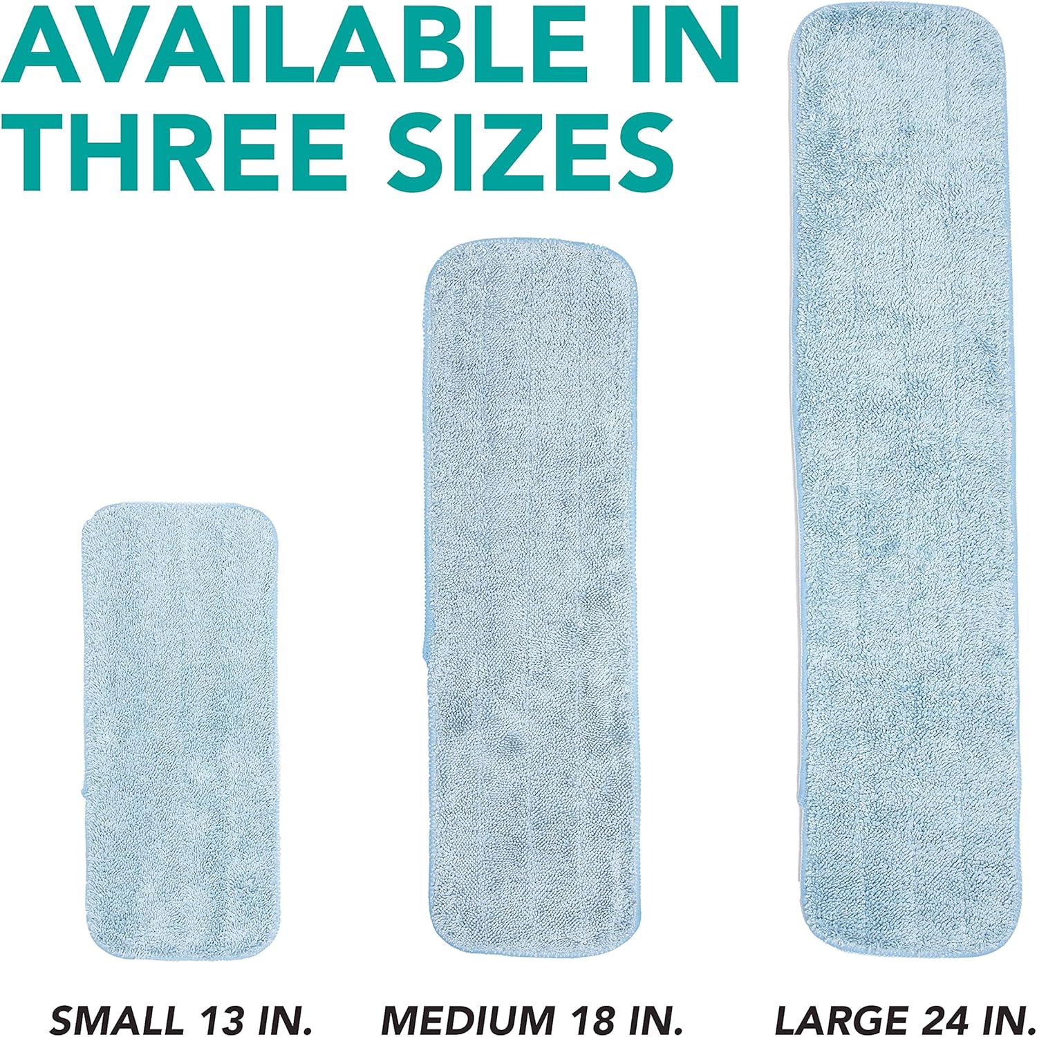 - ALL SIZE CLEANING SUPPLIES: Our commercial mop pad refills are designed to work with all-size velcro-backed flat mop frames, including compatible with Bona and Rubbermaid Mop Heads. Mop pads come in 13", 18" and 24" and are effective in cleaning any floor surface - vinyl, hardwood, laminate, and tile.