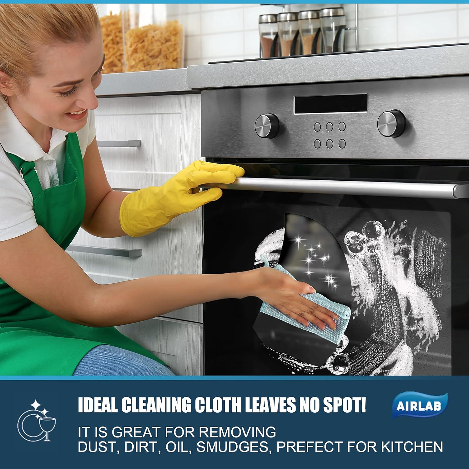 - ALL-PURPOSE RAG: This cleaning rag is great for removing dust, dirt, oil, and smudges, making it ideal for kitchen cleaning, dusting, glass, and more. It's perfect for use on pots and pans, plates, kitchen utensils, counters, mirrors, glasses, furniture, bathroom sinks, and beyond - truly an essential nanoscale cleaning cloth for every household!