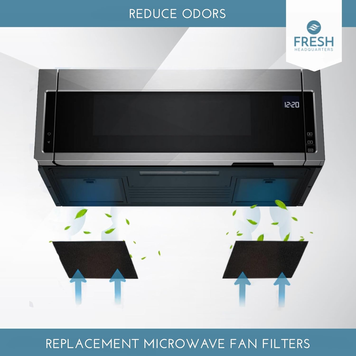 2-Pack Activated Carbon Charcoal Microwave Hood Filters - Pre-Cut 10" x 7.21" Microwave Hood Filters - Compatible w/Whirlpool WML55011 & KitchenAid Low‑Profile Models, Made in USA