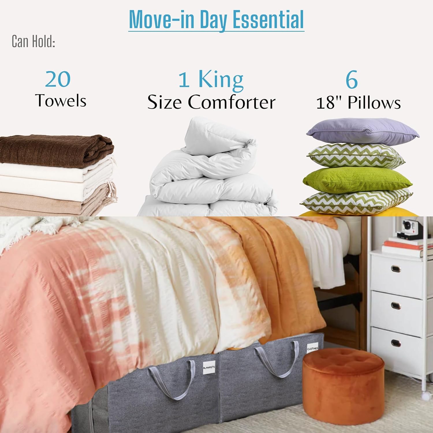 - Perfect for Moving and Storage – Whether you're moving to a new home or organizing seasonal storage, easily sort and identify your items, including blankets, bedding, comforters, towels, pillows, linens, and stuffed animals. Keep everything organized and accessible with ease!