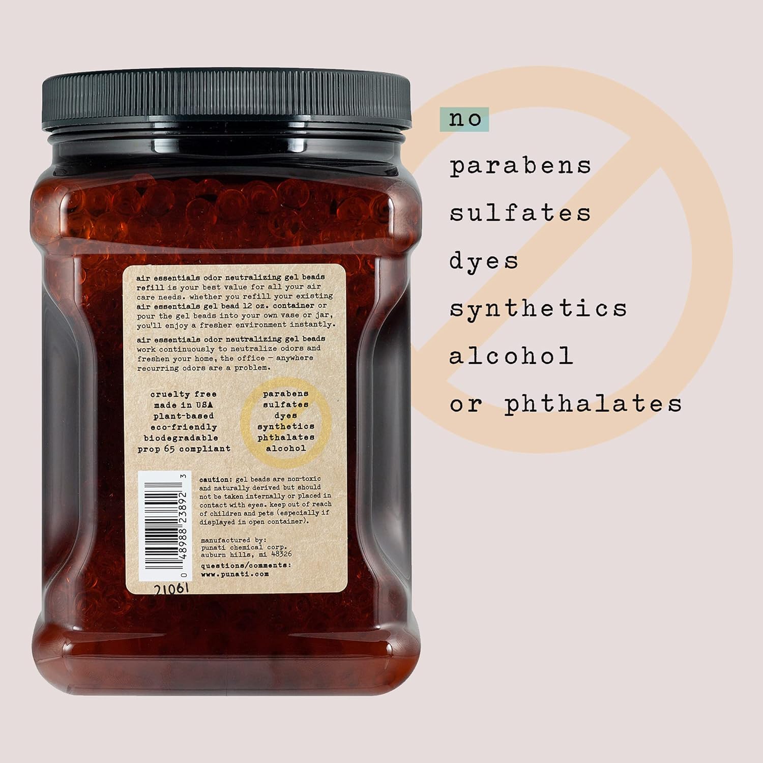 - MADE WITH PURE ESSENTIAL OILS - Air Essentials Air Freshening & Odor Neutralizing Gel Bead Refill contains only plant derived ingredients and a blend of pure essential oils. Each jar provides a pleasant fragrance that does not overwhelm the senses. The Gel Beads will work 24/7 for up to 60 days in up to 400 square feet.