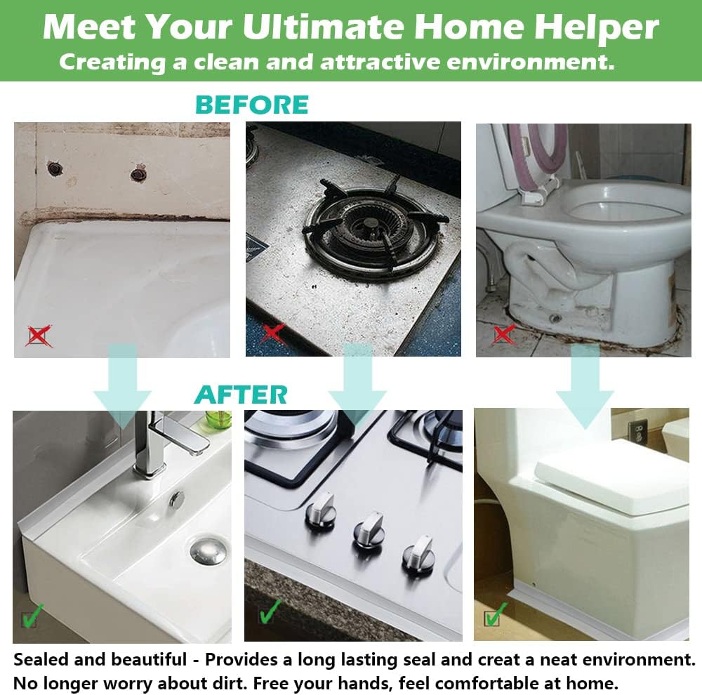 - Wide Application - Super helper at home. Wildly used in sealing the seams of gas stove, sinks, shower,toilet bottom, washbasin,corner joints, window sill and cracks, keep your home clean and tidy. Specially designed for family.