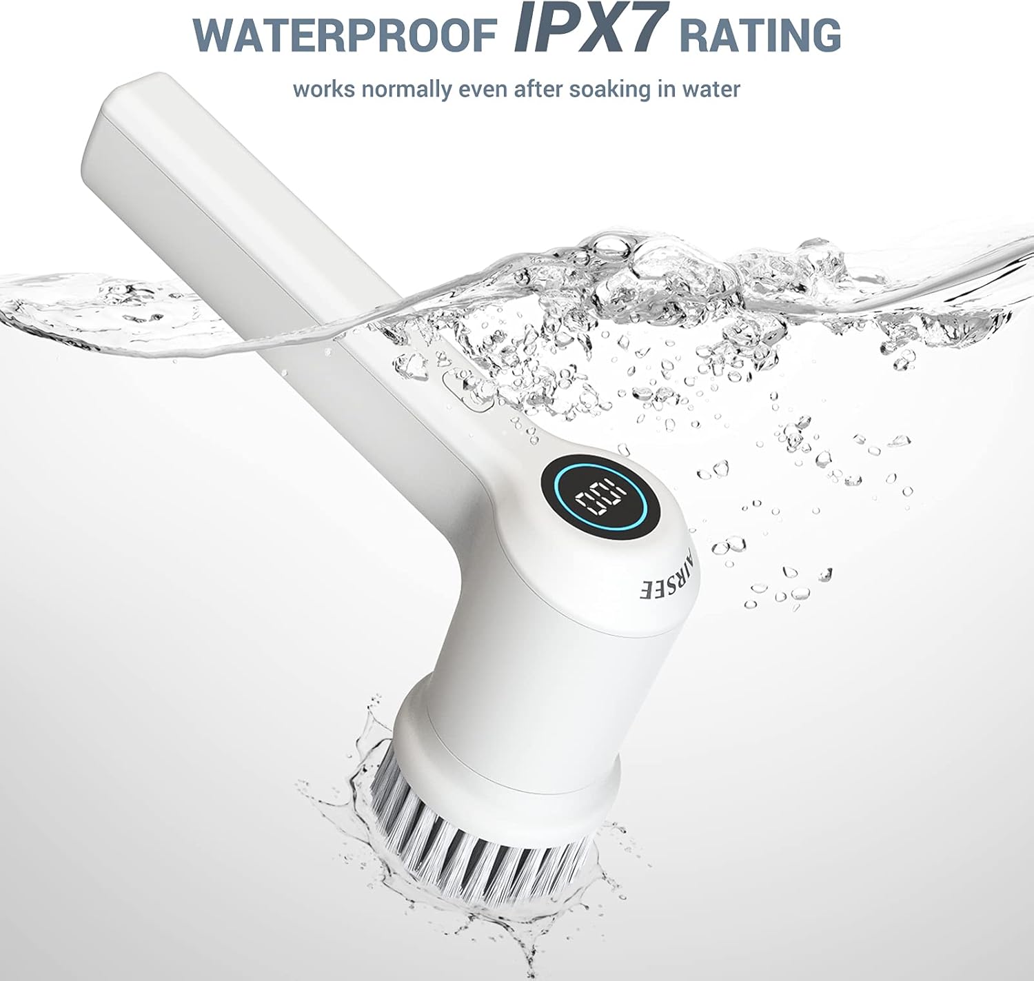 - Why choose us? Our high-torque handheld spin scrubber reaches speeds of up to 350 r/min; it sustains continuous operation for up to 100 minutes with just 2.5 hours of rapid charging; and features an LED display; ; come with 6 brush heads to meet your different cleaning needs; Professional IPX7 waterproof level enables the scrubber to work in the water for a long time without being damaged.