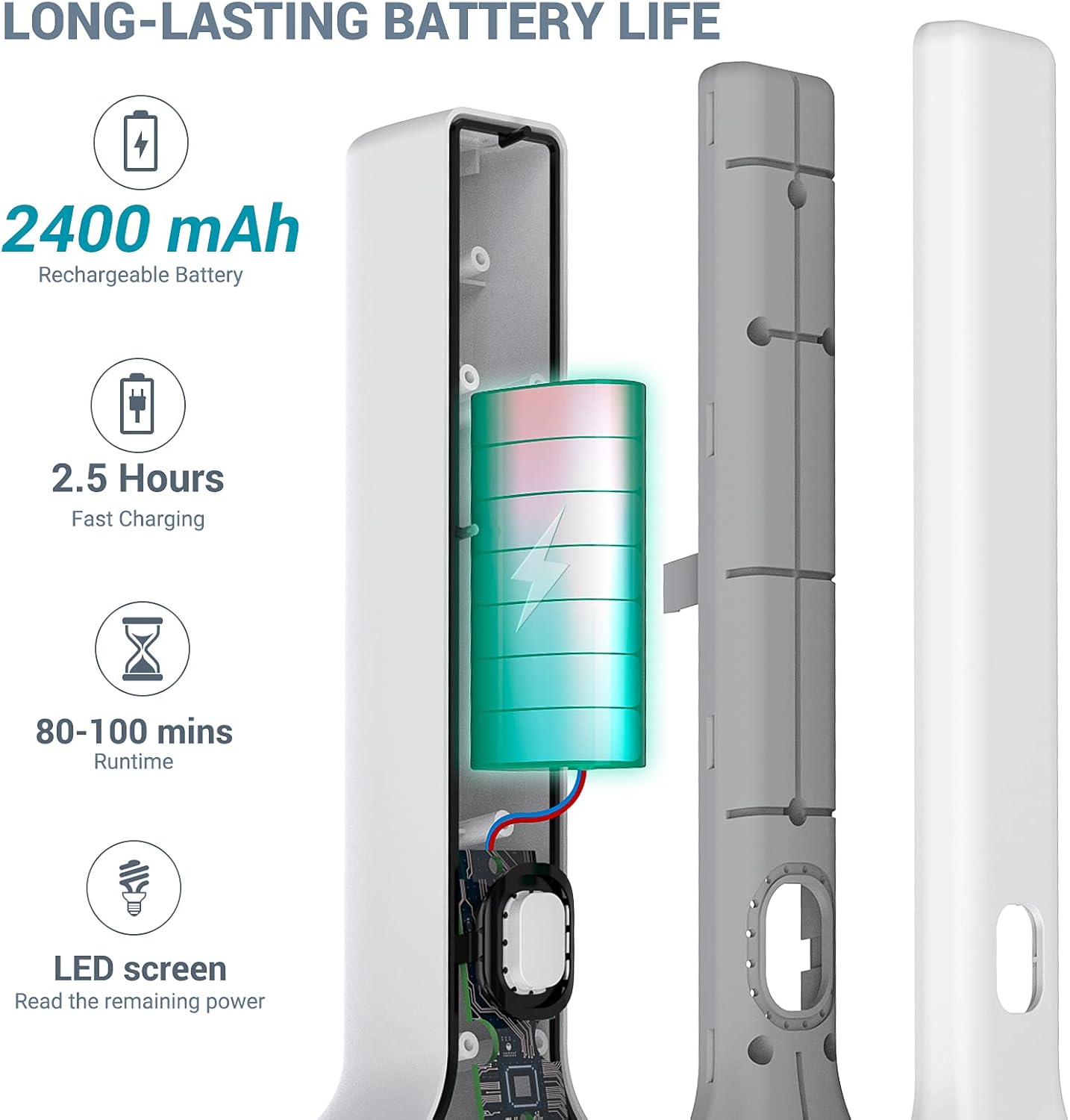 - Strong battery and LED digital screen - Equipped with an integrated rechargeable battery, this scrubber can run for 80-100 minutes on just a 2.5-hour charge, allowing for extended, uninterrupted cleaning sessions. The LED display conveniently shows the current mode and battery life remaining.