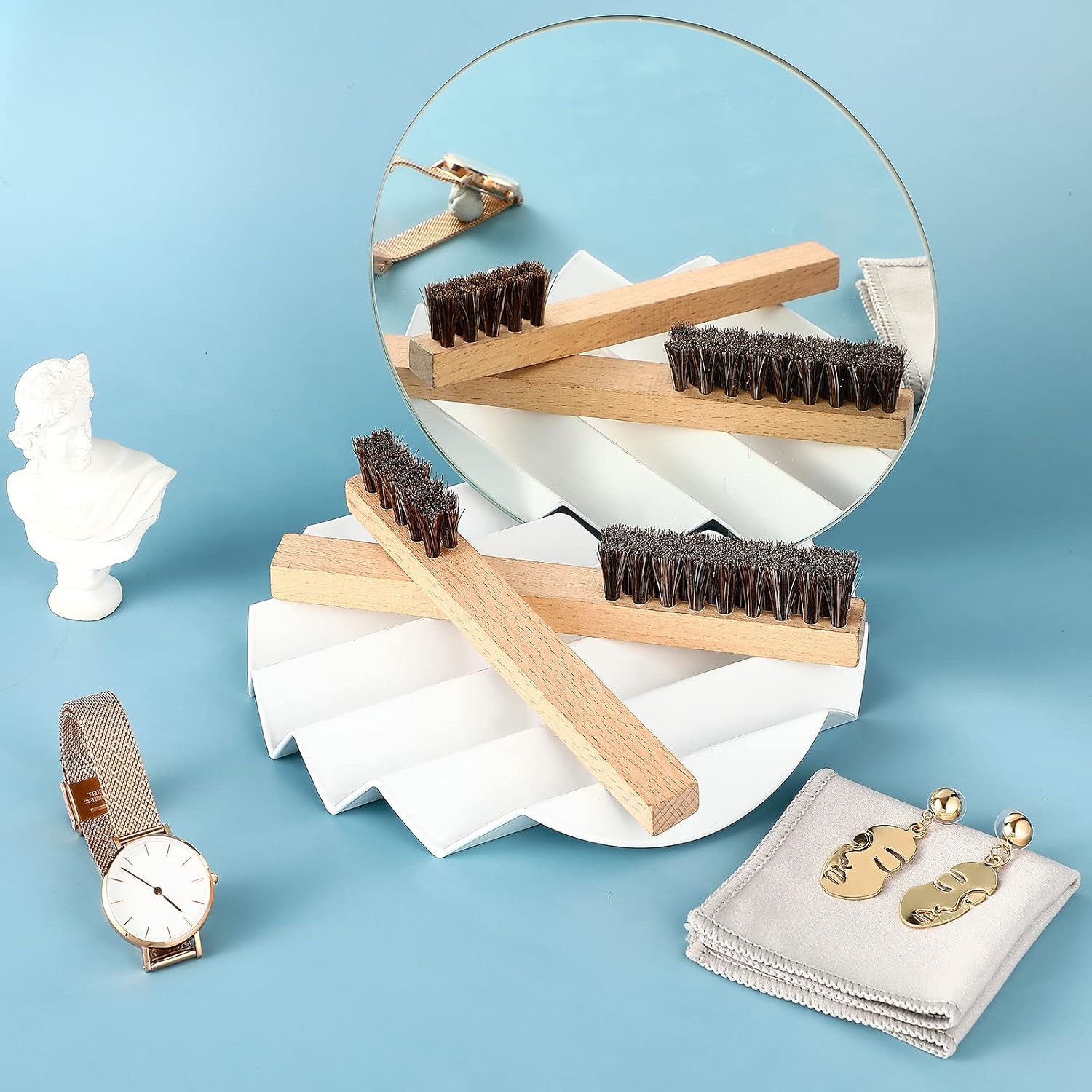 Patelai 6 Pieces Silver Polish Set, 4 Silver Cleaning Horsehair Brushes with 2 Pieces Polish Cloth Jewelry Cleaning Kit for Detail Work, Jewelry Tarnish Silverware Plateware(Classic)
