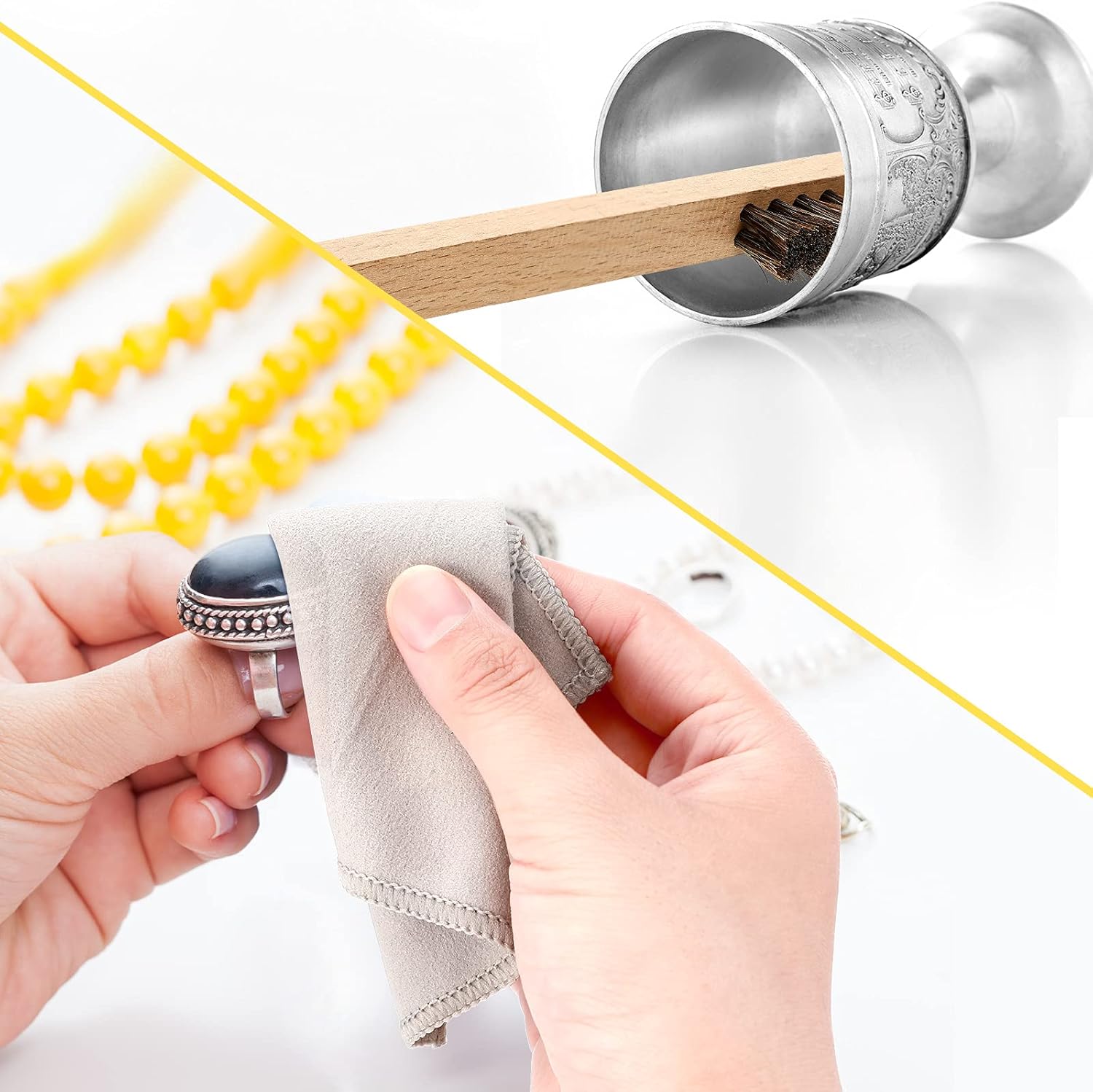 - Size Information: the length of the bristles is approx. 1.5 cm/ 0.6 inch; And the length of the brushes have 2 sizes, which are convenient to wipe the various details of the jewelry; The size of the silver wiping cloth is 15 x 15 cm/ 6 x 6 inches, which is easy to clean to difficult-to-clean locations